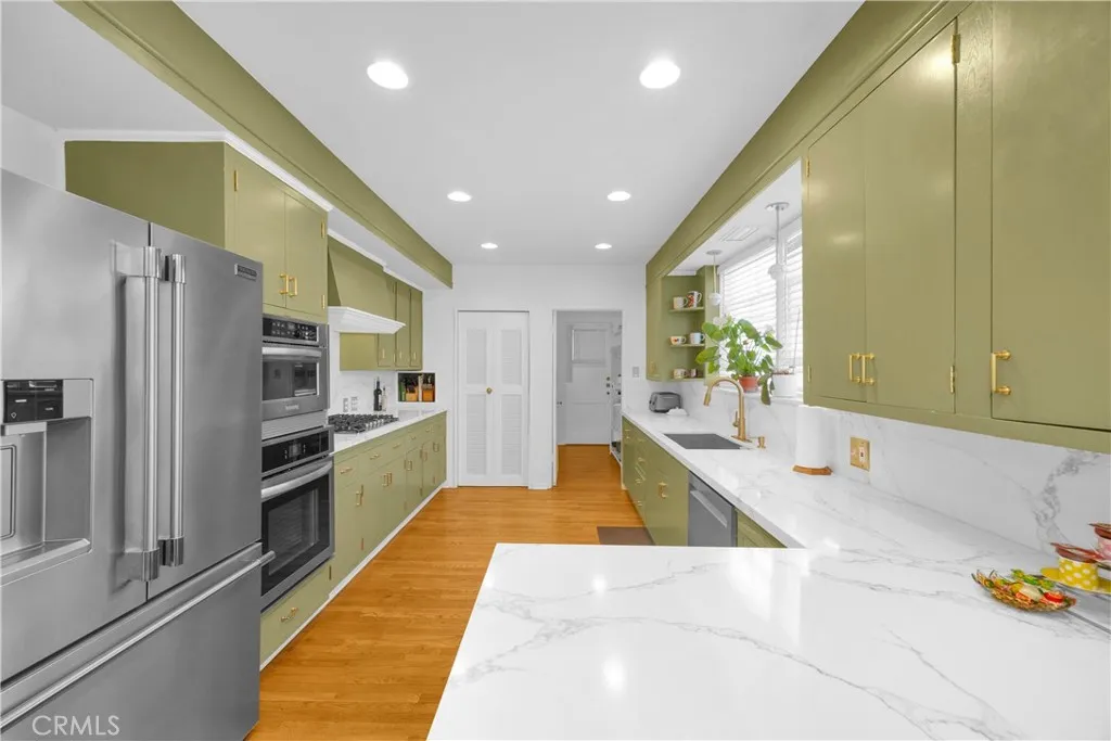 Welcome to 929 East Marshall Place, a distinguished two-story Colonial Revival nestled in the heart of Bixby Knolls. Offering five bedrooms, four bathrooms, and 3,100 square feet of updated living space, this residence seamlessly blends timeless architecture with modern comforts. The homes curb appeal is undeniable with its symmetrical faade, landscaped grounds, and brick walkway leading to an arched entry create an inviting first impression. Inside, a grand foyer welcomes you with hardwood floors, intricate moldings, and an elegant iron staircase, setting the stage for sophisticated yet livable interiors. The main level features expansive formal living and dining rooms, highlighted by a herringbone-tiled fireplace, custom lighting, and French doors that open to the lush backyard. The remodeled kitchen pairs sage cabinetry with quartz countertops, stainless steel appliances, and a charming garden window. A versatile sunroom with terracotta tile floors and direct outdoor access provides additional space for relaxation or entertaining. Two first-floor bedrooms, including one with an ensuite bath, offer flexibility for guests, an office, or multi-generational living. Upstairs, the primary suite serves as a private retreat with French doors opening to a balcony, a spacious walk-in closet, and a spa-inspired ensuite with dual vanities and a soaking tub. Two additional bedrooms and a flexible landing area, perfect as a reading nook or gallery wall round out the upper level. Throughout, original details have been carefully preserved while bathrooms and finishes have been thoughtfu