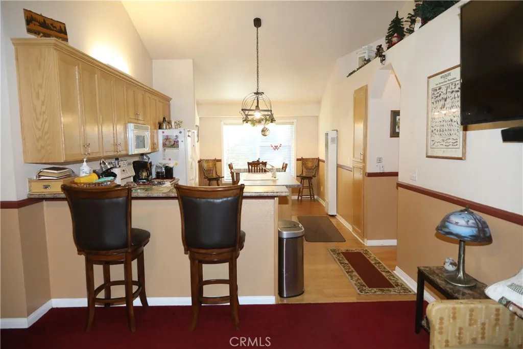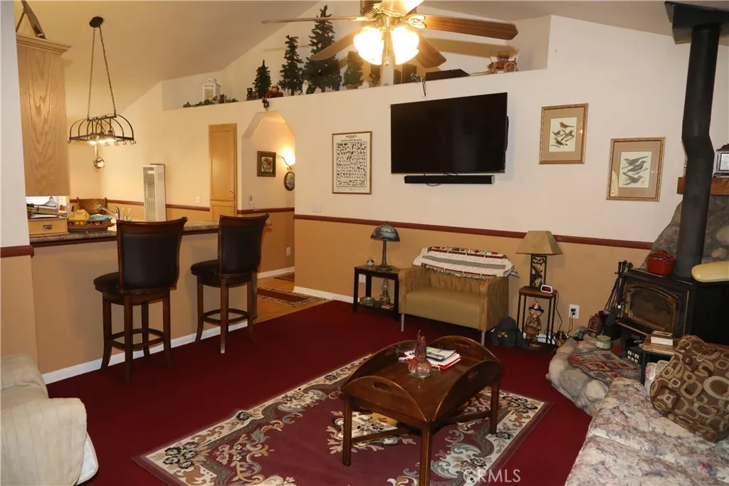 This 3 bedroom 2 bath home is conveniently located for easy access to hiking, biking, and outdoor activities. This mountain retreat has been well taken care of with a large kitchen connected to a living room and dining area. The master bedroom has a walk-in closet and a large double sink vanity. French doors from the master bedroom open up to a large Trex deck that spans the entire width of the home. Each room has its own heater and thermostat. The living room has a wood burning stove perfect for those weekend getaways. Convenient indoor laundry just off of the kitchen and a nice fenced front porch to enjoy the mountain air. This beautiful home is located just 10-15 minutes from downtown Big Bear. Most of the furniture is included with the property. Don't miss this one.