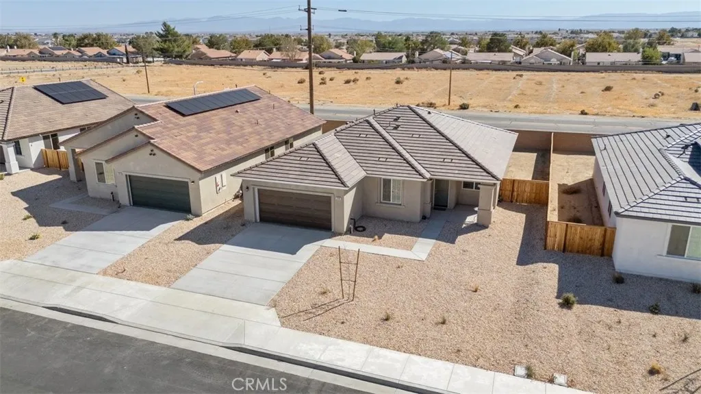 Experience modern desert living at its finest in this brand-new 2024 built home in Rosamond. This beautifully designed 4-bedroom, 2-bath residence blends comfort, energy efficiency, and style in every detail. Step inside to an open-concept floor plan filled with natural light and a spacious kitchen featuring sleek white quartz countertops, stainless steel finishes, and a perfect layout for entertaining. The inviting living area flows seamlessly into the dining space, creating an ideal setting for family gatherings. With paid solar, you'll enjoy lower utility costs and a greener lifestyle from day one. The large backyard is a blank canvas ready for your dream outdoor living space, garden, or future pool. Conveniently located near the 14 Freeway and Edwards Air Force Base, this home offers an easy commute while keeping you close to schools, parks, and all that Rosamond has to offer.