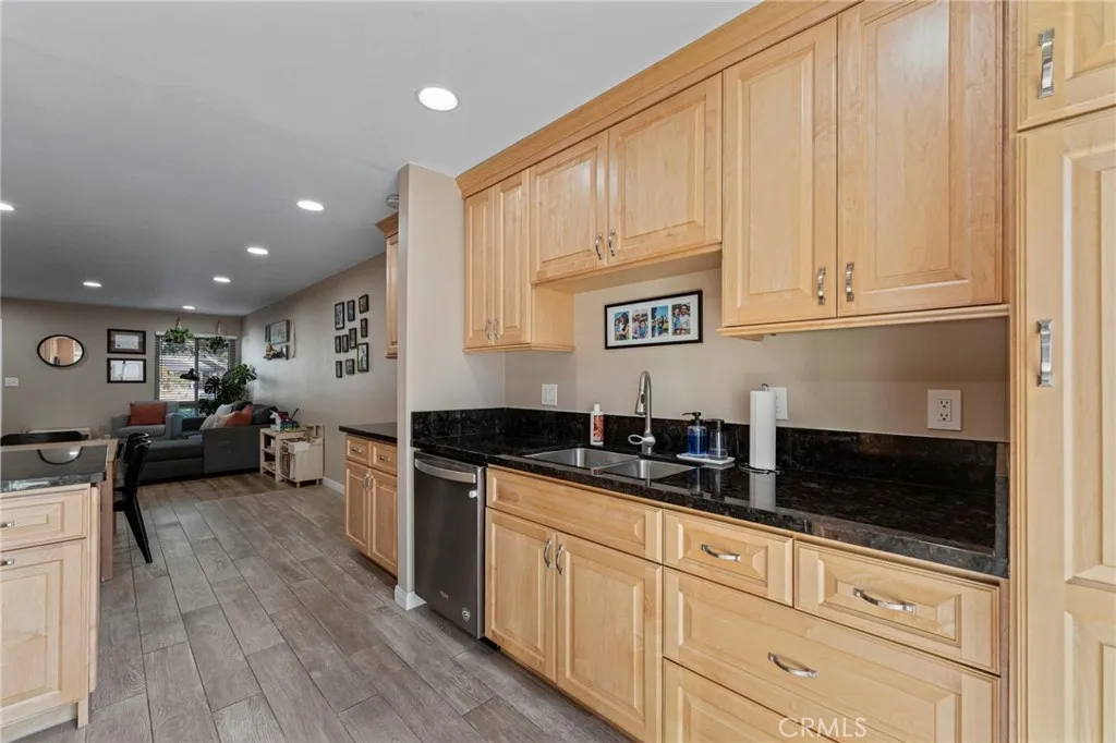 This spacious and meticulously updated 2-bedroom home offers tons of modern comfort and style, along with 1.5 beautifully updated bathrooms with contemporary fixtures and finishes. The home was recently remodeled to include a half bathroom off the master bedroom, creating a convenient master suite, in addition to the full bathroom. Both bathrooms are meticulously updated with Arizona tile flooring and shower and Kohler and Delta appliances. The stunning kitchen boasts plenty of features that were all installed in 2021, such as: updated solid wood cabinetry with elegant hardware, sleek granite countertops, and high-end appliances such as the stove, microwave and dishwasher. This is all complemented by recessed lighting and a large high quality glass slider door to the private patio backyard, allowing in a flood of natural afternoon light. The open-concept layout of this beautiful home features high-end wood laminate flooring throughout, installed in 2021. Both bedrooms are spacious, with floor-to-ceiling mirror slider doors for the ample closet space, and real pine baseboards. Newer dual pane windows throughout the home. The home has a high-end smart climate control system connected to the newer furnace and air conditioning unit, plus, there is an attic fan system for quick, efficient cooling when you get home on those hot summer days. Outside the glass slider door, the spacious and private patio backyard provides a serene retreat for relaxation or gatherings. This yard connects to the spacious 2-car garage which includes convenient laundry facilities, adding to the homes fu