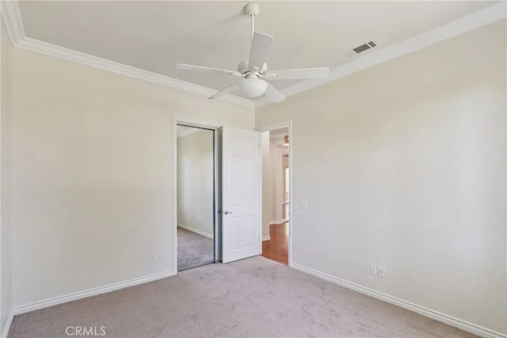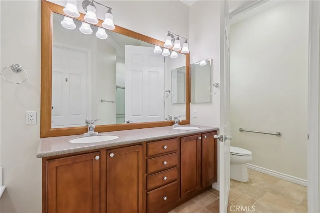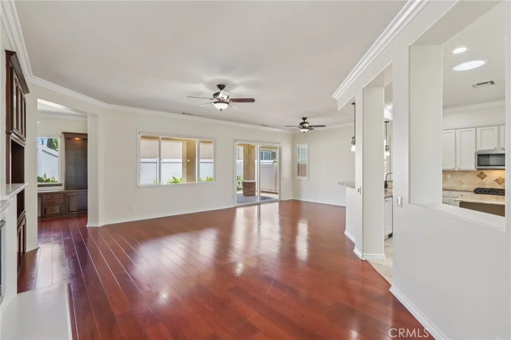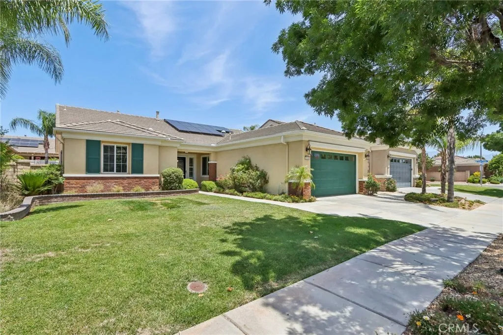 Step into elevated living in the heart of Solera Diamond Valley by Del Webb, one of the regions premier 55+ communities. This thoughtfully upgraded residence is a rare find, offering elegant design, high-end finishes, and a seamless indoor-outdoor lifestyle. Every detailfrom the lush landscaping to the custom interior toucheshas been curated for both comfort and sophistication. From the moment you arrive, youll be captivated by the gorgeous professional landscaping, including a mature tree in the front parkway, and a welcoming security screen front door that opens to a glass inlay front door, creating a warm and inviting entry. Step inside to discover plantation shutters, crown molding, and gorgeous upgraded flooring that flow seamlessly throughout the open-concept layout. The living room features a cozy fireplace, a custom built-in, and direct access to a versatile office space complete with a built-in desk and bookcasesideal for remote work or quiet hobbies. The chefs kitchen is a standout, boasting granite countertops on the island, bar top, and work surfaces, white cabinetry, and an elegant tile backsplash. Upgraded fixtures enhance both style and function throughout the home. Retreat to the spacious primary bedroom suite, offering ample room to relax. The en-suite bath includes a step-in shower, a soaking tub, and a walk-in closet with custom built-in shelving, delivering the perfect balance of luxury and practicality. Additional highlights include a laundry room with extra storage cabinetry and a utility sink, ideal for added convenience. Enjoy the Southern California
