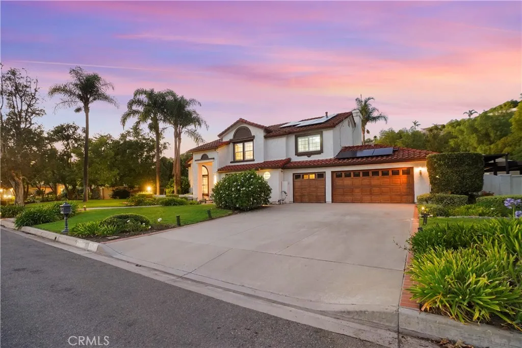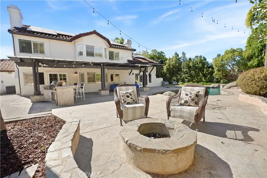 Welcome to 13049 Sunny Lane, an exceptional residence tucked within the rolling hills of Santa Rosa Valleys prestigious Bridlewood Estates. Situated on a large lot of 1.45 acres of private grounds, this home offers the rare harmony of luxury, comfort, and California outdoor living. Upon entry, natural light fills the soaring ceilings and open spaces, highlighting a beautifully updated kitchen with Taj Mahal quartzite countertops, an expansive island, and brand-new appliances crafted for those who love to cook and entertain in style. The main living area is defined by its striking double-sided fireplace, creating warmth and an inviting atmosphere. A spacious Office, a bathroom, and the bonus room on the main floor provides flexibility, perfect for a home gym, playroom, or creative studio. On the second floor there are 3 bedrooms and 2 bathrooms, which include the Primary Suite with vaulted ceilings offering a serene retreat; a spacious bathroom with soaking tub, steam shower, and a large walk-in closet. The resort-inspired backyard is the ultimate escape, presenting a sparkling pool with water feature, fire pit, and multiple lounge areas. Accent lighting creates a tranquil ambiance that makes every evening feel like a vacation at home. Additional highlights include solar panels, a Tesla power-wall (leased), whole-home Halo water filtration system, Lorex security system, and a large detached studio offering potential as a guest suite or ADU for supplemental income. A sanctuary of timeless beauty and modern sophistication, nestled in one of Ventura County's most desirable comm