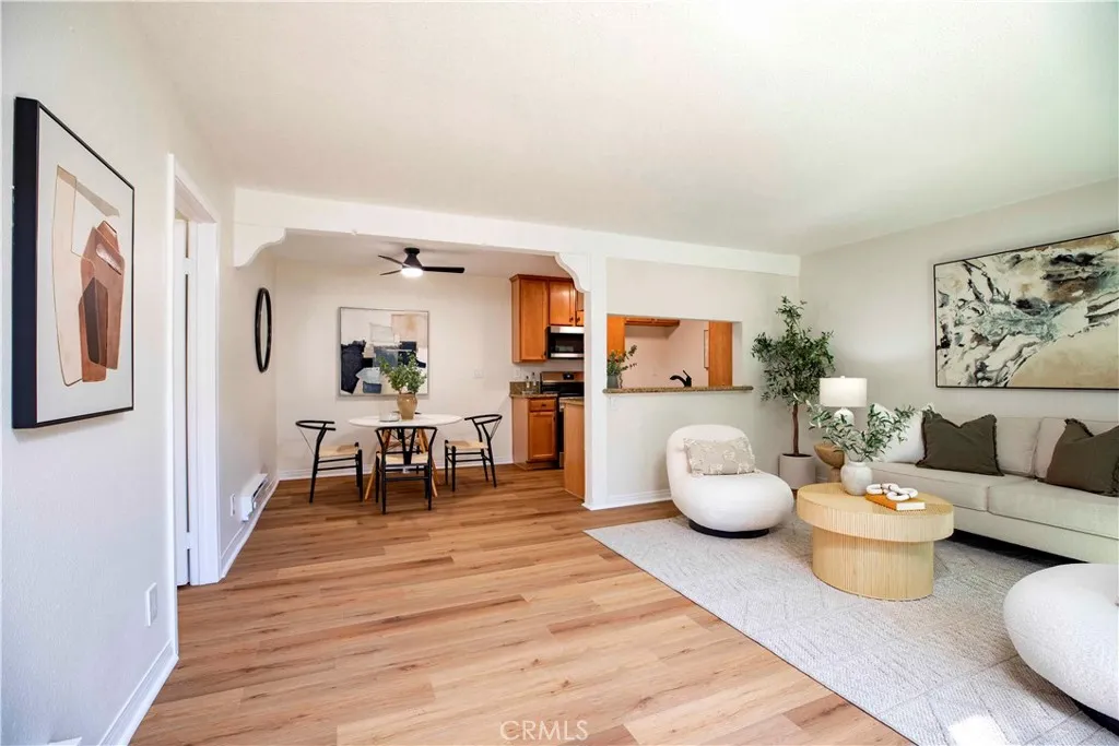 Welcome to this fully updated 2-bedroom, 1-bath condo in the Pacific Pines community. Home qualifies for a $20,000 free grant that can be applied to closing cost or down payment! Thoughtfully remodeled with all-new flooring, fresh paint, and modern appliances, this home combines comfort, style, and convenience in one turnkey package. The open-concept living and dining areas are light and inviting, flowing seamlessly into the updated kitchen with sleek finishes, stainless steel appliances, and ample storage. Both bedrooms are generously sized with equally generous closet space. The bathroom adds a clean, contemporary finish. This ground-level unit offers easy access to shopping, dining, entertainment, and freewaysperfect for modern living. On top of it all, residents enjoy a low HOA fee that covers desirable community amenities such as pools, jacuzzis, bbq area, fitness center, rec room, and 2 parking spots. Rarely does an updated home like this comes to market in this community, making this a standout opportunity for first-time buyers, downsizers, or investors.