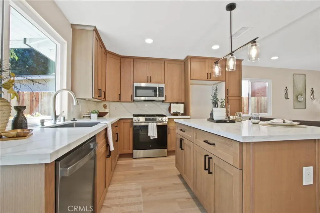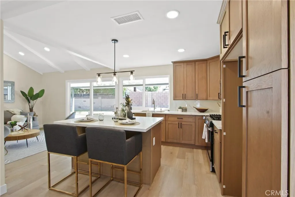 BACK ON MARKET! Buyer could not perform. Your second chance, this one wont last long! Welcome to 2717 Dayna Street, a stunning 4 bedroom 2 bathroom home that has been fully remodeled from top to bottom and sits in one of the most desirable neighborhoods on the border of Tustin and Orange. Step inside to find an open concept floor plan with vaulted ceilings, warm natural light, and beautiful new flooring throughout. The spacious kitchen features brand new cabinetry, quartz countertops, stainless steel appliances, and an oversized island perfect for entertaining. Both bathrooms have been completely redesigned with modern finishes and designer tile. The primary suite offers a serene retreat with a private ensuite bathroom showcasing a walk-in shower and elegant fixtures. Enjoy the seamless indoor outdoor flow through sliding doors that open to a large backyard, perfect for gatherings or relaxation. With easy freeway access and a prime location near Old Town Orange, shopping, dining, and award-winning schools, this move-in ready home combines comfort, style, and convenience. 6000 sq ft lot with a two car garage completes this ideal Southern California residence.