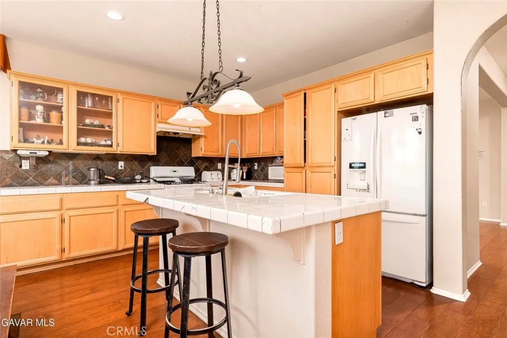 FORMER MODEL HOME WITH LOVELY UPGRADES -- And Freshly Painted for the New Owner. You enter to Rich Brazilian real Wood Floors. There is a Fomal Living Room and Dining Room Plus a Spacious Family room with Builtins and Cozy Fireplace adjacent to the Huge Kitchen, great for family living, Lots of Kitchen Cabinets including Bill Desk. Some with Glass Fronts. Front Downstairs Bedroom with High Ceilings being used as Office/Game Room. The Master is oversized and also has Custom Builtins. The Master Bath has Dual Sinks, custom tile flooring, a Separate Tub and Shower. This is a great family home. Don't miss it!