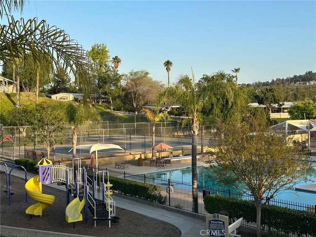 REDUCED! This Home shouts Pride of Ownership!!! Upgrades Galore! Nestled on a Corner Lot with Large back Yard with Vinyl Fencing. The homes Outside was Painted a year ago. Many upgrades to the outside include. Front and back porches upgraded, Home has been Leveled and Earthquake Braced. Custom Window Shades to keep home cooler in Summer. The Walkways are Granite. The Parking Area was widened to park two small cars side by side. Also Motion Dectection Lighting. The Outside Lanscaping is Desert Theme low maitenance. The inside of the Home is Like a Model. Freshly Painted with Upgrdes Galore. Front Custom Door with Glass. You will first notice the Tall Vaulted Ceilings and The Custom Laminite Wood Flooring with Mouldings throughout. The Kitchen has been remodeeld with Granite Counters, New Sink and plumbing and recessed Lighting. The home has Dual Pane Windows Throughout with Custom Shutters. Both Baths have also been Remodeled. Master bath has new Glass shower with tlled walls and Floor. So much to share. This home is a MUST SEE! All this in the most sought after Park in the IE ammenities galore. Like Living in a Resort. 3 Pools, 1 Tennis court and 2 Pickleball Courts, Spa and Workout Room, PicNic Area, and Dog Park. etc etc
