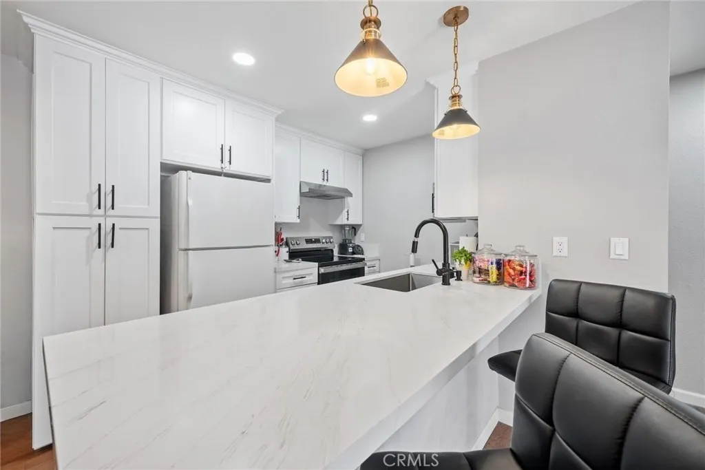 COMPLETELY RENOVATED, LOWER END UNIT, 2 bedroom 2 bathroom condo that offers 878 square feet of living space. The kitchen has been completely updated with brand new cabinetry, countertops and stainless appliances. Both bathroom have been remodeled with modern finishes and brand new tub/shower enclosures. Throughout the home you will find vinyl plank flooring. This gated community includes three swimming pools and well kept grounds. There is a covered carport with extra storage and plenty of addition parking. Minutes from south coast plaza, dining, close freeway access and so much more!! HOA covers water, trash, and sewer