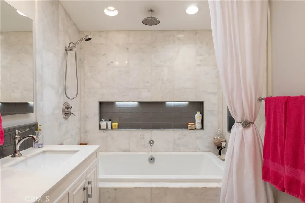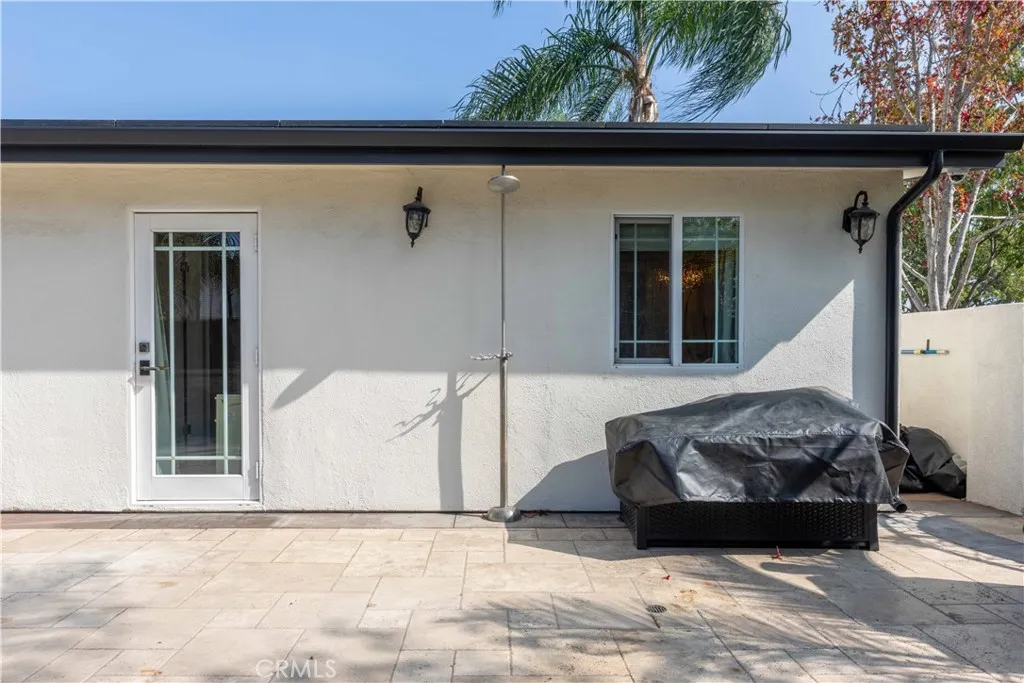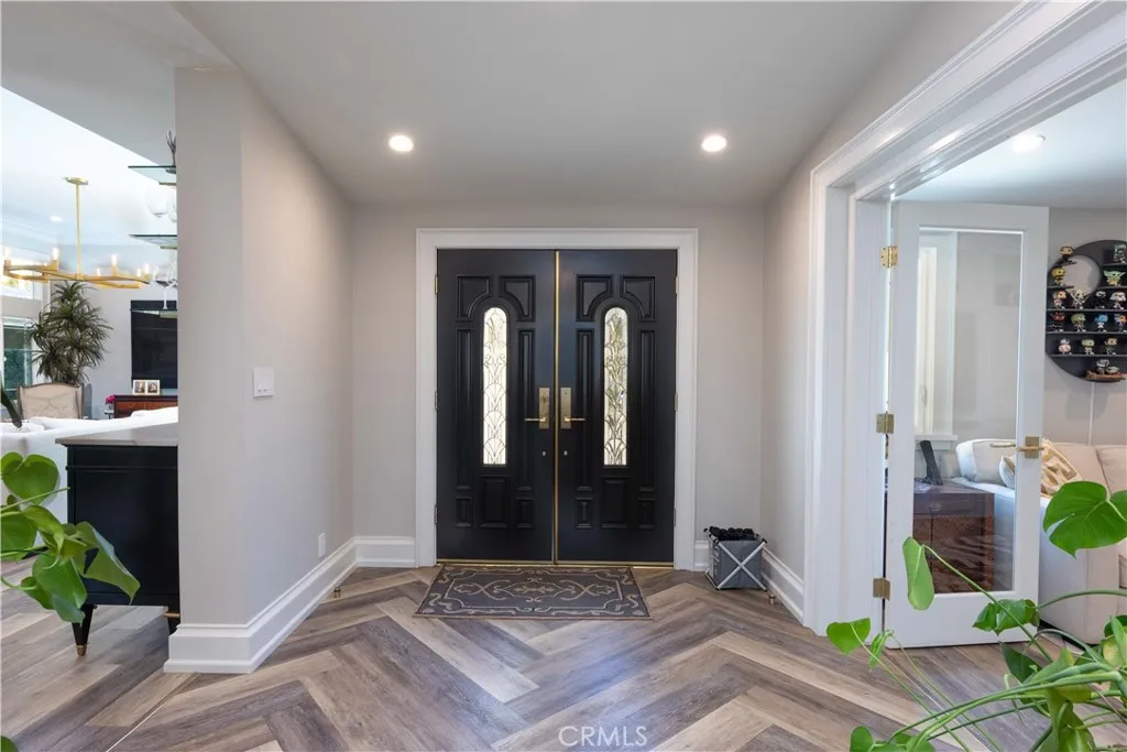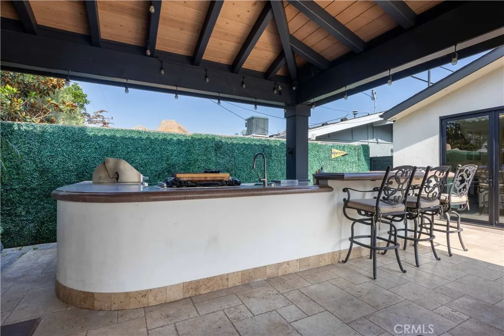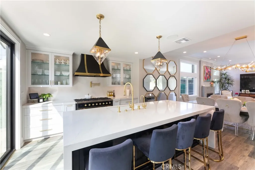 Luxury Living in the Heart of Rossmoor - Every detail of this single-level 4/3 home has been thoughtfully designed and executed to perfection. Step inside to experience refined elegance and effortless comfort, where modern luxury meets timeless sophistication. The heart of the home is a fully reimagined chefs kitchen, showcasing high-end appliances, (ILVE 8 burner range from Italy) custom cabinetry with built-ins, quartz waterfall countertops, and a generous island perfect for entertaining next to the multi slide glass doors leading to the backyard. Every element of this kitchen was curated for both style and functionality, blending clean design with everyday practicality including a built in & plumbed smart coffee machine, walk in pantry and storage in abundance. Spacious living areas flow seamlessly, featuring open-concept design, abundant natural light, and refined finishes throughout. The primary suite offers a private retreat, complete with a spa-inspired bathroom featuring dual vanities, a soaking tub, and a walk-in shower. Beyond the interiors, discover a private backyard oasis that rivals a five-star resort. A custom-designed Pebble-Tec pool and spa anchor the space, complemented by a covered outdoor kitchen, wood-burning pizza oven, fireplace, and fire pit with built in outdoor seating, outdoor shower and separate bathroom - all tucked beneath a California pergola. Thoughtfully wired for sound and entertainment, this area invites intimate gatherings, alfresco dining, and serene moments under the stars. Inside, the fourth bedroom has been reimagined as an elegant of