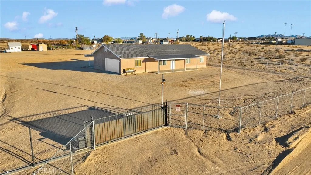 Welcome to your dream home in Barstow! This stunning custom-built 2020 modern farmhouse sits on a fully fenced 2.3 acre lot with an automatic front gate, offering both privacy and convenience. As you step inside, youll immediately notice the open floor plan filled with natural light, tile flooring and carpet throughout recess lighting, and a warm, inviting atmosphere that perfectly blends comfort with modern style. The beautiful kitchen features laminate countertops, a deep stainless-steel sink, ample cabinet space, stainless steel appliances, self closing cabinets and drawers. The breakfast bar provides the perfect spot for casual dining or entertaining guests. Just off the kitchen, the indoor laundry room with cabinet space. The primary bedroom is spacious and thoughtfully designed, complete with a walk-in closet and an ensuite bathroom featuring dual sinks, laminate countertops, a walk-in tile shower with dual shower heads, self closing cabinets and drawers. The two additional bedrooms are generously sized and the other full bathroom has a shower/tub combo, laminate countertops, and self closing cabinets and drawers. Step outside to enjoy the covered back patio, perfect for relaxing and taking in the peaceful desert views. The property includes a chicken coop, private well, well house with a 1,500-gallon storage tank, a garden area, and even a storage containerideal for tools, hobbies, or extra storage needs. A 2-car garage provides additional convenience. Located just minutes from Barstows upcoming BNSF project, this property offers incredible potential for both homeown