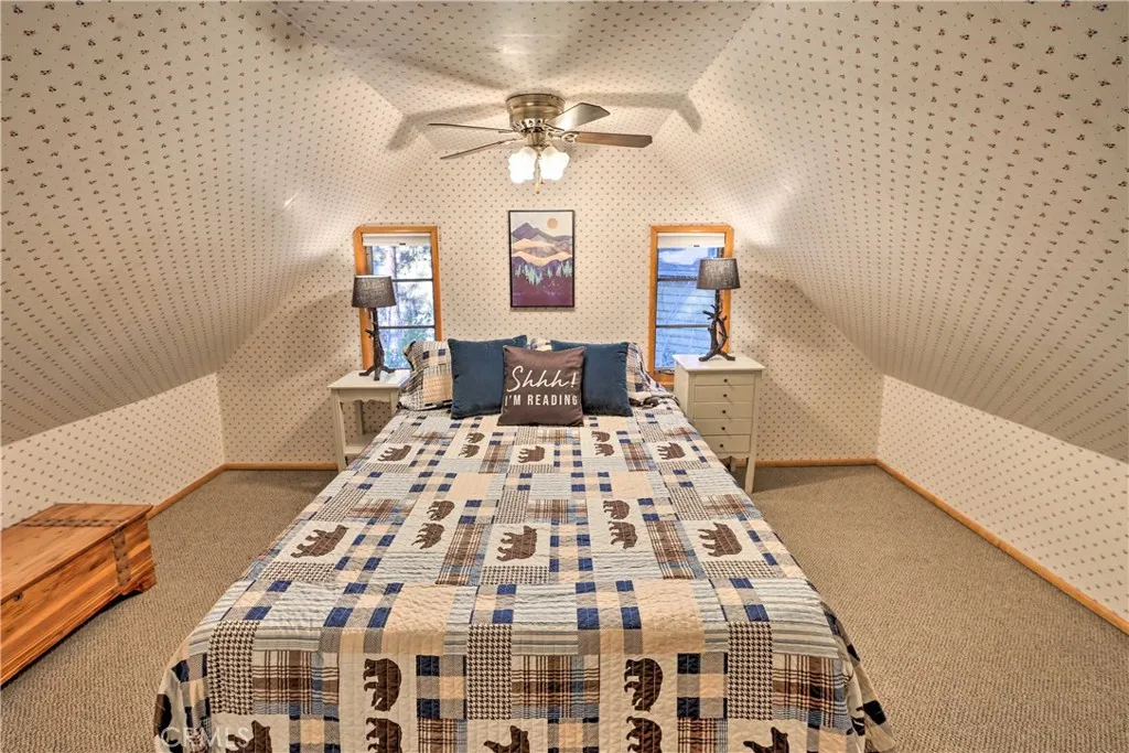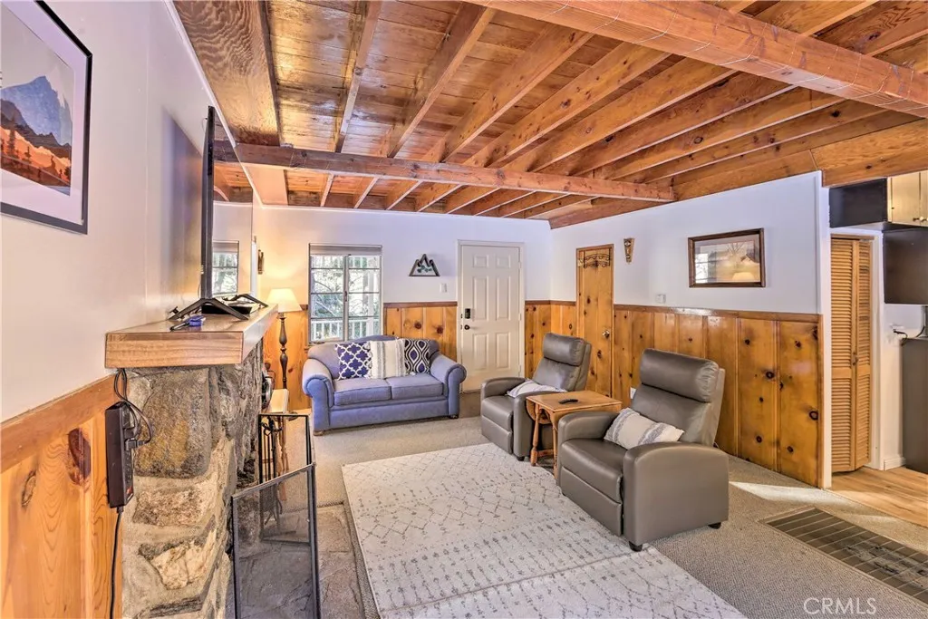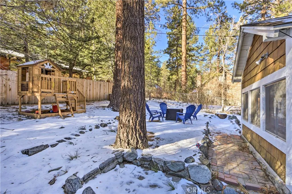 Welcome to 1069 Eagle Road, a charming Wrightwood property offering privacy, usable outdoor space, and thoughtful updates throughout. The home sits on a large lot with three driveways: a circular driveway in front for convenient access and guest parking, and a second driveway leading to the detached single-car garage. The property also provides a third driveway for dedicated RV parking, adding additional flexibility. The wrap-around front porch, complete with porch swing, offers an inviting place to relax and take in the surroundings. Inside, the main living spaces are comfortable and cozy with a wood burning fireplace. The downstairs bathroom has been recently remodeled. The layout lends itself well to everyday living or to use as a mountain getaway. The backyard is fully enclosed, offering privacy and space to enjoy the outdoors, and includes a playhouse that adds character and a family-friendly touch. This home works well as a primary residence or investment property. It has previously operated as an Airbnb, and the majority of the furniture shown in the photos will be included in the sale, making it ready for a seamless transition into either full-time living or a furnished rental. Please note: the home is currently tenant-occupied, so the interior will appear differently when touring than what is shown in the listing photos. Located near Wrightwood Village, local hiking trails, and Mountain High Resort, this property offers a blend of accessibility, mountain lifestyle, and practical usability.