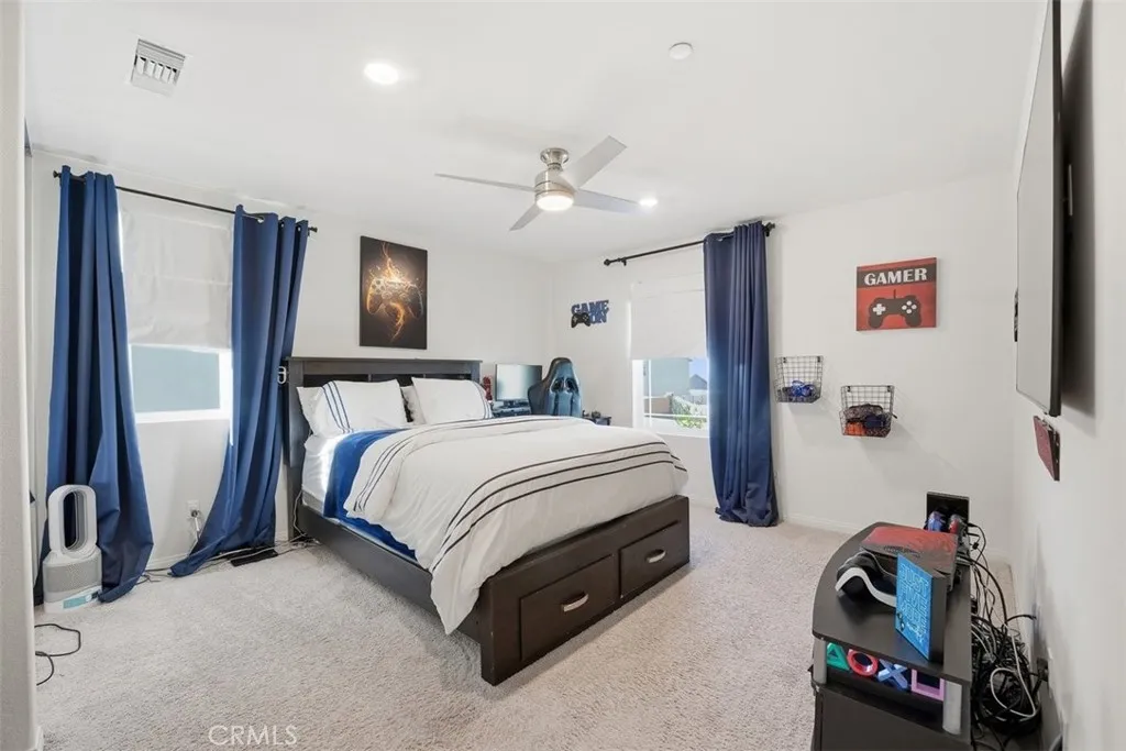 Welcome to 7608 Citrusmoon Ct, where comfort, elegance and opportunity meet in the serene Spring Mountain Ranch community. This stunning two-story home features 6 bedrooms and 4 baths spanning over 3,000 sq.ft. of beautifully upgraded living space. Step inside to discover an open-concept layout with elevated ceilings and a bright great room that flows effortlessly into a chef's kitchen - complete with upgraded cabinets, quartz countertops, designer backsplash and a 10-ft center island perfect for family gatherings or entertaining. Downstairs, you'll find a guest bedroom (currently a home gym), a private Next-Gen suite with its own bathroom, and a convenient guest bath. Upstairs opens to a spacious loft/family room, three additional bedrooms, a full bath, and a luxurious primary suite with a massive walk-in closet and ample storage. Step outside to your backyard oasis - over 7,000 sq.ft of outdoor living framed by breathtaking mountain views. Enjoy a thoughtfully landscaped yard with concrete patios, pathways, turf lawn and ambient lighting - ideal for barbecues, kids' play or add a pool or ADU for income potential. This home is eco-friendly and energy-smart, featuring solar (buyer to assume), EV/Tesla charging, tankless water heater and a whole-home filtration and soft-water system - giving you comfort and savings year-round. Located minutes from downtown Riverside, UCR, Loma Linda Hospital and Redlands, with easy access to I-10, I-215, I-60 and I-91, you'll enjoy effortless commuting, fine dining, shopping and the best of SoCal living. Don't miss this rare opportunity! Sch