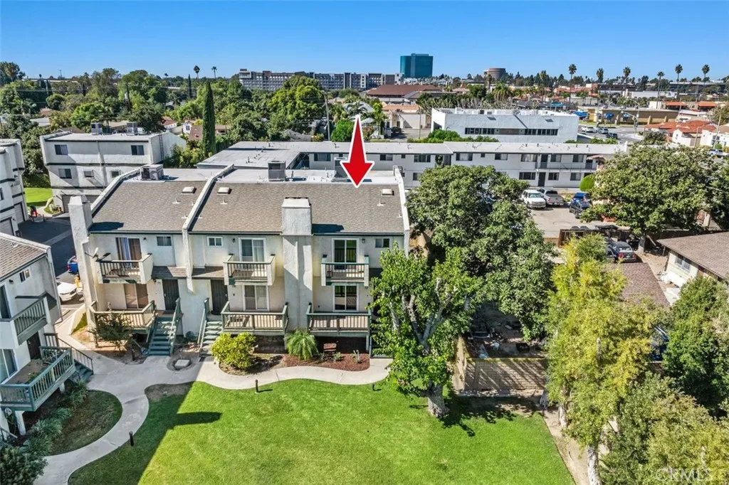 Beautiful 1,451 sq. ft. END-UNIT in the boutique 26-home Tustin Commons community, just a short walk to Old Town Tustin. This spacious 2 bedroom, 2.5 bath residence offers peaceful hillside, greenbelt, and pool views, plus an open living area with a brick fireplace, balcony, and bright kitchen with breakfast bar. Upstairs features dual master suites, each with its own ensuite bath. The primary includes vaulted ceilings, a private balcony, dual closets, and an updated bath with dual sinks and walk-in shower. The secondary suite has a walk-in closet and its own private bath. A major highlight is the oversized attached two-car garage with a huge approx. 170 sq. ft. storage/flex spaceideal for a home gym, studio, workshop, or organized storage. Additional features include indoor laundry and abundant natural light throughout. Tustin Commons offers a pool, spa, BBQ area, and lush landscaped groundsall tucked in a quiet, private setting close to Pine Tree Park, dining, shops, and major freeways.