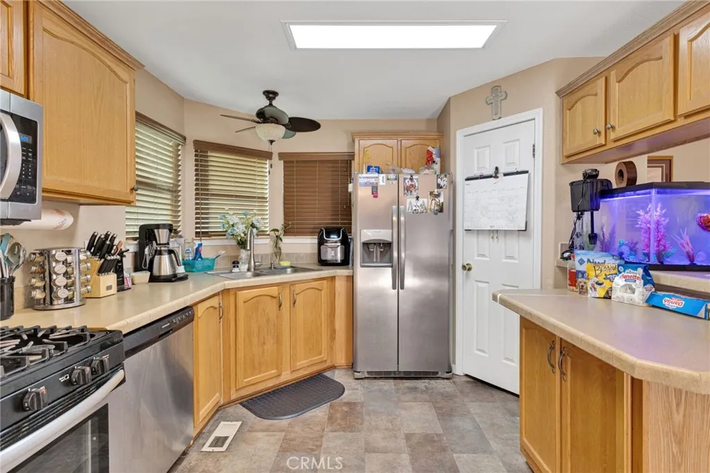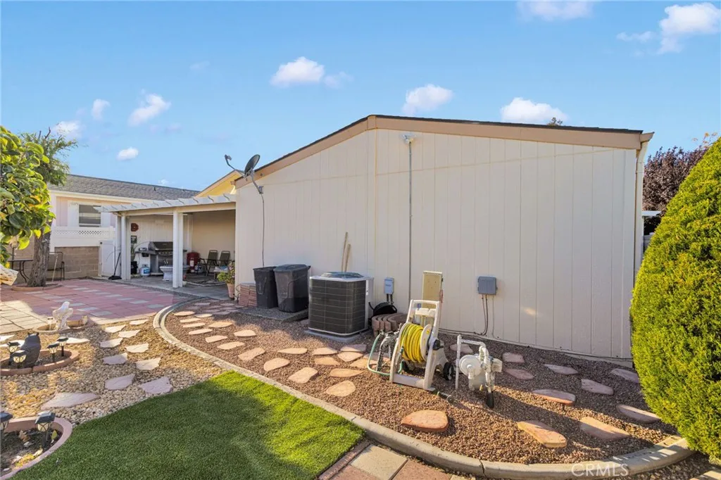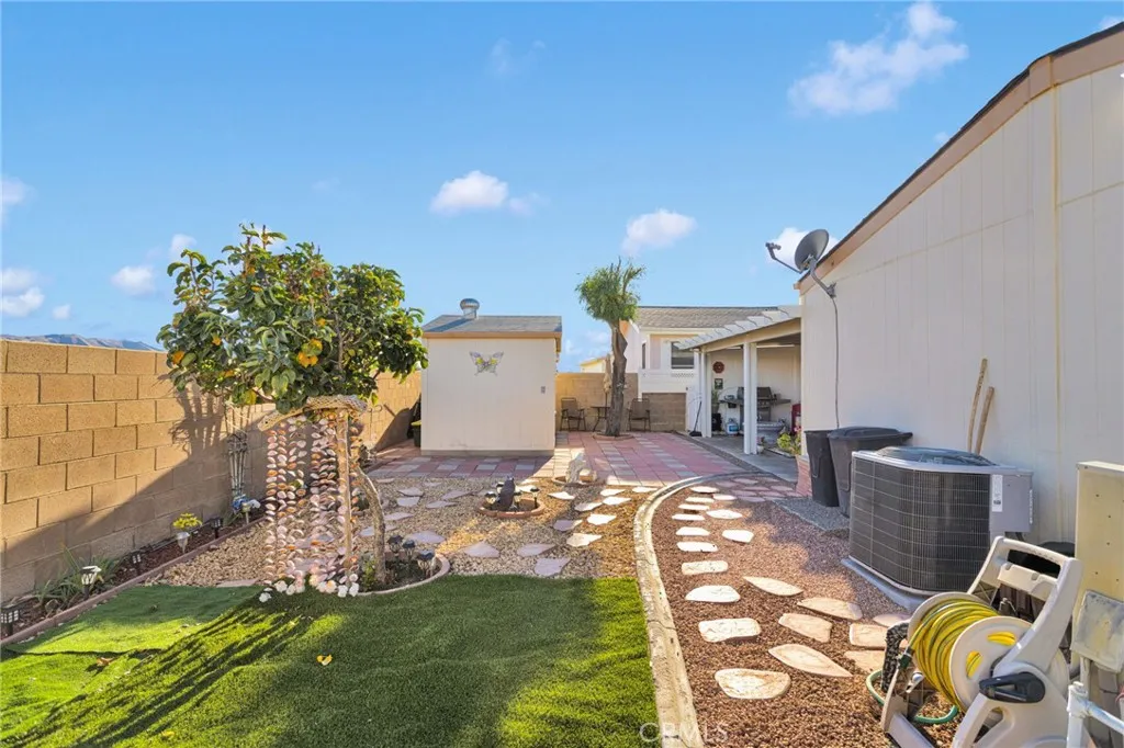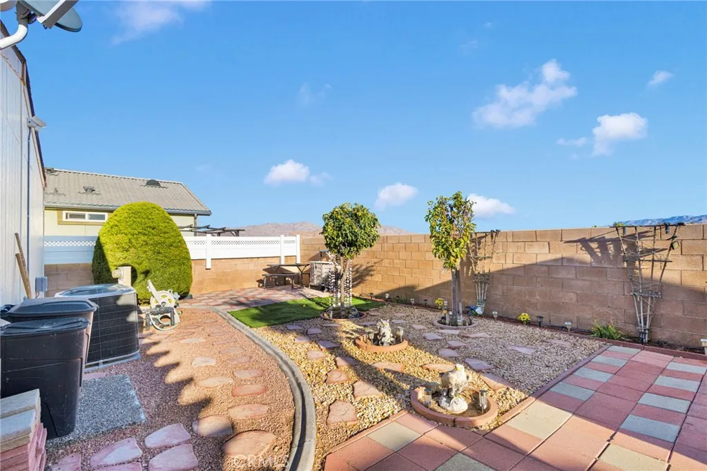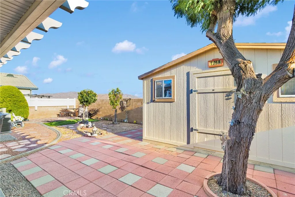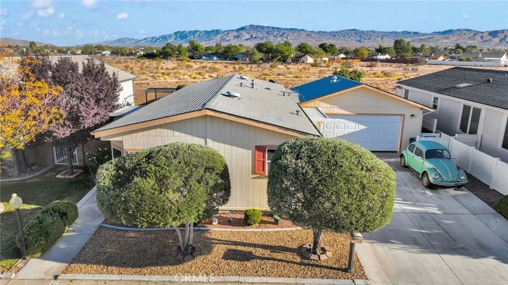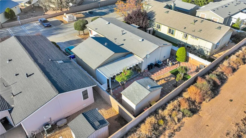 Welcome to your next home in beautiful Apple Valleys desirable 55+ community, Vista Del Rosa! Built in 2004, this spacious 3-bedroom, 2-bath manufactured home offers comfort, convenience, and thoughtful upgrades throughout. Enjoy a modern kitchen with stainless steel appliancesincluding a refrigerator, stove, dishwasher, and microwaveplus a washer, dryer, and second refrigerator all included in the sale. Relax in your Jacuzzi spa or unwind on the aluminum back porch and front patio surrounded by irrigated, manicured landscaping, a dog run, and a vinyl fence with block wall for added privacy. The home also features a rain gutter system, swamp cooler, flood light for security, and locked gates for peace of mind. A detached storage shed with electricity and a wind turbine vent provides extra space for tools or hobbies. This property blends low-maintenance living with all the comforts you deserveperfect for those looking to enjoy the best of senior community living in Apple Valley! Vista Del Rosa is a gated community with wonderful amenities, including a clubhouse, pool, spa, billiards, and BBQ area. Ideally located near shopping, dining, medical facilities, and the Apple Valley Senior Center with plenty of activities, this home offers the perfect blend of comfort, convenience, and community.