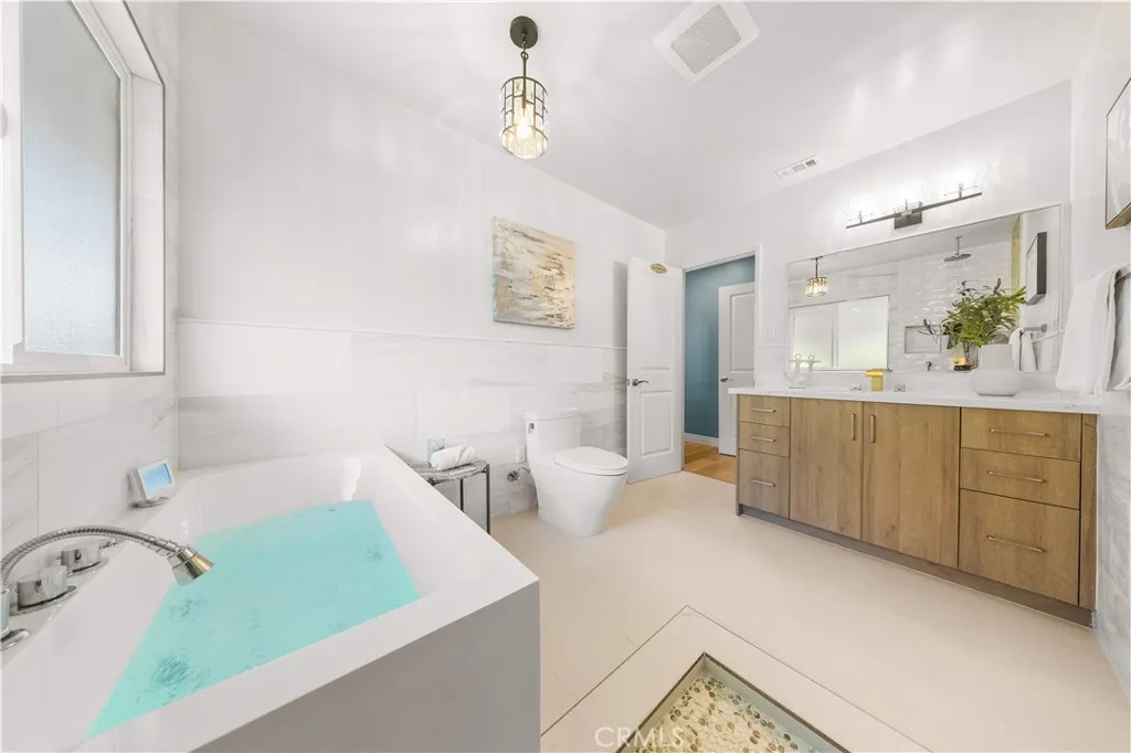 Welcome to your dream home located in Arcadia's prestigious school district! This immaculate property offers a perfect blend of modern amenities and timeless charm. It features a generous lot size of 13,638 sqft with a beautifully-upgraded single-story home, containing 3 bedrooms, 3.5 bathrooms, 3-car garage, a spacious master suite, and a second suite. The large living room, family room, and formal dining area are perfect for entertaining. The circular driveway and garage provide ample parking, while the expansive private front and back yards, lined with mature fruit trees, create a serene and spacious retreat. It was renovated in 2021, including a new kitchen, bathrooms, plumbing, electrical wiring, double-panels high-efficiency windows, new high-end hardwood floors, AC system ( including ductwork), insulation in attic, along with interior and exterior painting. The modern kitchen has quartz countertops, modern style cabinets, a kitchen island, and smart appliances. One bathrooms has a brand-new smart spa, the other 2 are also in pristine condition. A new water heater will be installed in 2025. The roof was replaced before the previous owner sold the property. 10 solar panels have been paid off, saving you a significant amount on your electricity bill. Situated within the Arcadia School district, this prime location is perfect for families. Enjoy unmatched convenience as the home is just minutes from school, supermarkets, shopping malls, restaurants, banks, and more. Schedule a viewing today and experience the epitome of Arcadia living!