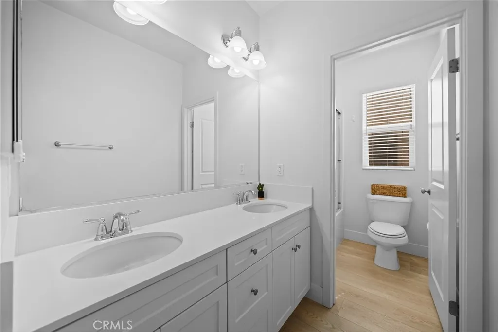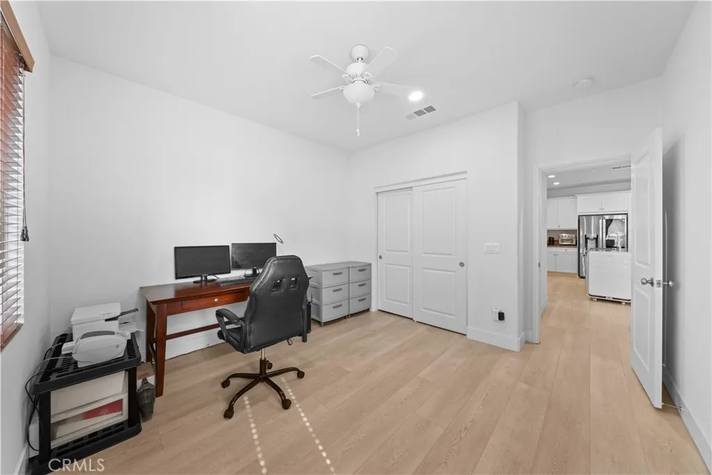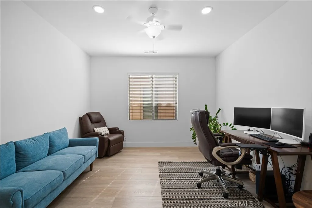 Welcome to this elegant 4-bedroom, 3-bath home in the highly desirable Preserve at Chino community! A charming front porch and classic European-style architecture lead you into a bright open-concept living space filled with natural light. The spacious great room seamlessly connects the living, dining, and kitchen areas ideal for both family gatherings and entertaining. The modern gourmet kitchen showcases stainless-steel appliances, granite countertops, sleek white cabinetry, and a large island perfect for casual dining or hosting guests. A downstairs bedroom with a full bath offers flexibility for an in-law suite, home office, or guest retreat. Upstairs features three additional bedrooms, a versatile loft, and a convenient laundry room. The primary suite is a true retreat with dual vanities, a soaking tub, separate shower, and a generous walk-in closet. Step outside to a low-maintenance, fully paved backyard perfect for relaxing weekends or evening gatherings. The home also includes an attached two-car garage and a tankless water heater for added efficiency. Residents of The Preserve enjoy resort-style amenities including a fitness center, pool and spa, clubhouse, library, parks, playgrounds, and scenic walking trails. The HOA maintains front yard landscaping for a worry-free lifestyle. Conveniently located near top-rated schools, shopping, and freeways this move-in-ready home truly has it all.