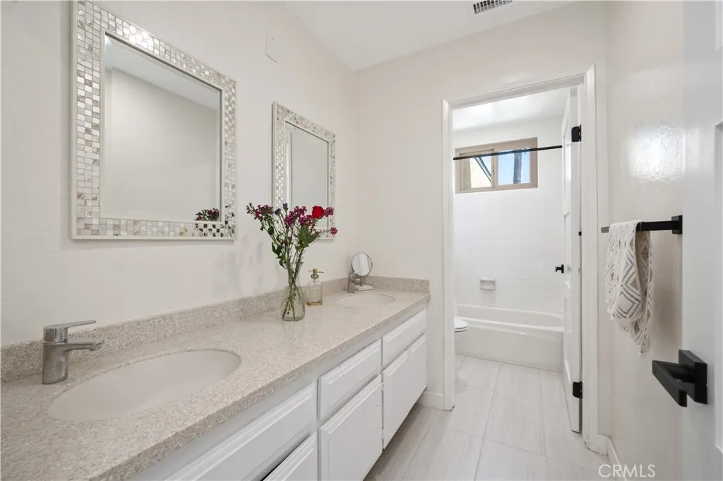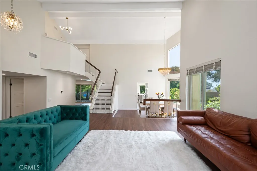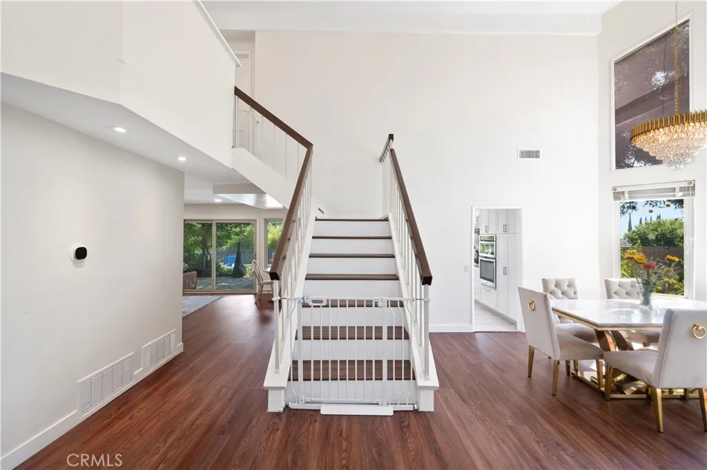 Nestled on a beautiful street, this stunning home is a spacious beauty. The house sits back in a luscious bed of artistically designed landscaping. As you enter, you're greeted by an updated, bright living and dining area filled with natural light. The updated kitchen offers panoramic views of the backyard, perfect for enjoying the scenery while you cook. Downstairs, you'll find an office with built-in cabinets, which can also serve as a bedroom. The family room, complete with a fireplace, is ideal for cozy evenings. Upstairs boasts three spacious bedrooms, including a bright primary room with a large en-suite featuring a soaking tub. One of the bedrooms offers calming views of the mountains. The backyard provides many sitting areas. The pool will be a nice place to relax and enjoy the California sunshine. The updated three-car garage includes plenty of storage and newer epoxy floors. Close to shopping and walking trails.