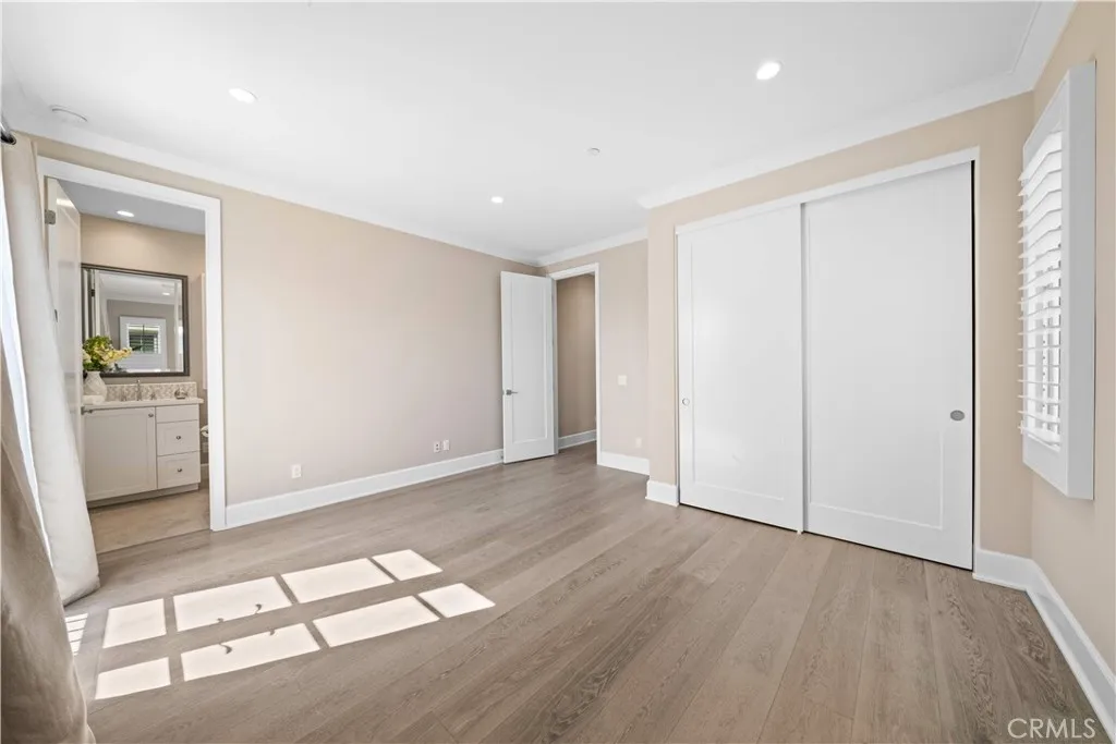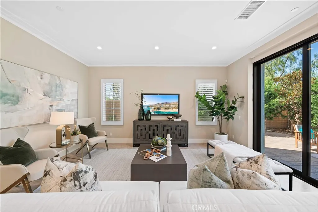 Tucked away on a premium corner lot with no neighbors on three sides, this beautifully upgraded 4-bedroom, 4-bathroom home offers both privacy and elevated living in one of Irvines most desirable communities. Designed with comfort and flexibility in mind, the open-concept main level features a bedroom with a full bath, ideal for guests or multi-generational living, along with a spacious great room and a chef-inspired kitchen showcasing quartz countertops, designer backsplash, and custom cabinetry. Upstairs, the home continues to impress with a generous primary suite, two additional en-suite bedrooms, and a versatile loft perfect for a home office, media space, or playroom. Throughout the home, thoughtful upgrades include engineered hardwood flooring upstairs, premium tile and fixtures, plantation shutters, whole-house water filtration, and a security system. Enjoy sweeping mountain and city views from the upper levelon clear nights, even catch a glimpse of Disneylands fireworks from the comfort of home. The spacious side yard offers ample room for outdoor entertaining and gardening. Set within a resort-style community featuring a pool, spa, clubhouse, parks, and walking trails, and located in the award-winning Northwood High School district, this exceptional home offers the perfect blend of location, layout, and lifestyle.