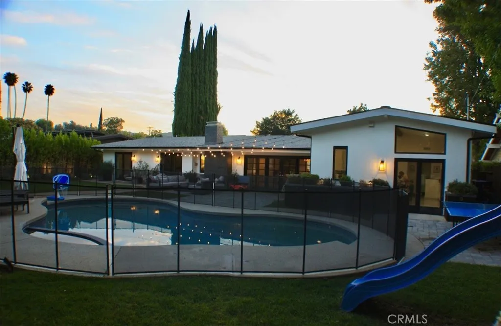 Stunning Mid Century modern designed by Charles Du Bois! This gorgeous 4 bedroom POOL home is remodeled to the 10s w/ a contemporary design! Original bright open floorplan w/vaulted ceilings and center island gourmet kitchen featuring white shaker cabinets, quartz countertops, top of the line appliances and 6 burner cooktop with high CFM designer hood. This chefs dream kitchen opens to the spacious living room and the large family room w/ sliders allow easy access to the perfect private backyard with lush landscaping, sparkling pool / spa and multiple patios to accommodate entertaining and outdoor dining! Large circular driveway with 2 car garage and tons of built-ins for storage! Amazing neighborhood in prime location south of the Blvd adjacent to Calabasas close to Bristol Farms, Starbucks, Farmers Market, Commons of Calabasas, The Village and award winning school district!