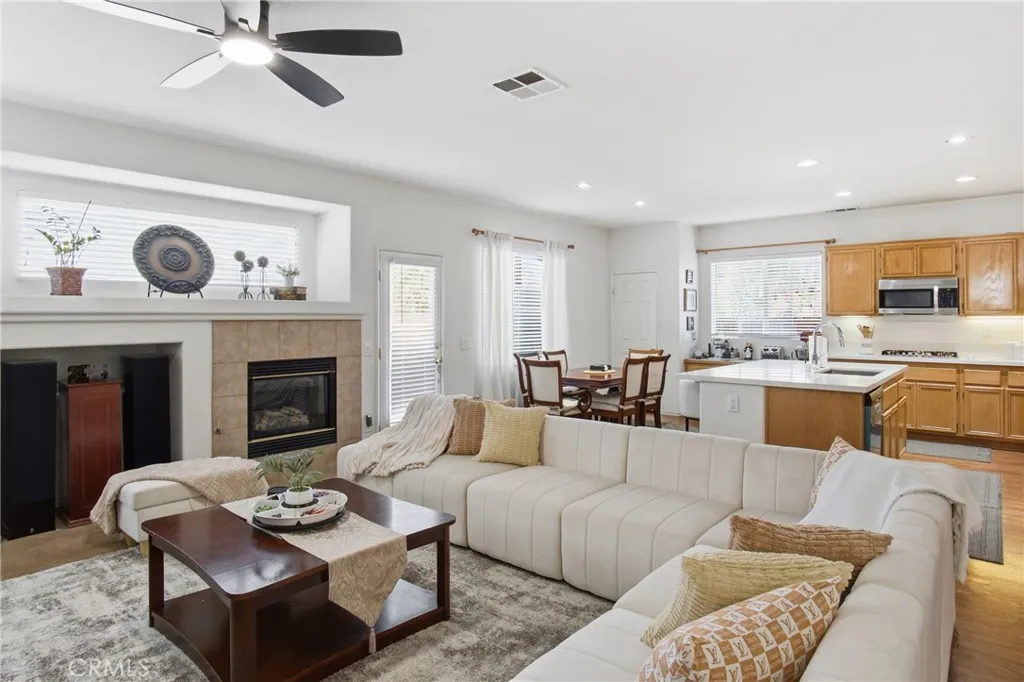 Welcome to this stunning two-story home located in a highly sought-after community of Victoria Grove! This stunning two-story residence sits on a premium corner lot with minimal immediate neighbors, offering extra privacy and a rare sense of space. With 5 bedrooms, 3 bathrooms, and over 3,100 sq ft, this home perfectly blends comfort, elegance, and functionality. Step inside to a bright and airy living room filled with natural light from oversized windows. The formal dining area flows seamlessly into an upgraded kitchen featuring an extended island, abundant cabinet space, and generous countersideal for meal prep or entertaining. The large family room, complete with a cozy fireplace, provides the perfect setting for gatherings and movie nights. Downstairs also features a main-floor bedroom and a recently updated full bathroom, perfect for guests or multi-generational living. Upstairs, a spacious loft offers endless possibilitiesgame room, office, or second living space. The primary suite is a true retreat, featuring a walk-in closet, dual vanities, soaking tub, and separate shower, with enough room for a private sitting area, nursery, or workspace. Three additional bedrooms round out the upper level, providing flexibility for family, guests, or a home office setup. Outside, enjoy your low-maintenance backyard with drought-tolerant landscaping, established fruit trees, and RV parkingready for entertaining, relaxing, or weekend projects. The three-car garage offers ample space for storage, vehicles, or a workshop. Victoria Grove residents enjoy access to resort-style amenitie