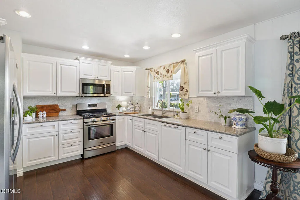 Motivated Seller! This beautifully updated home offers lovely views of the creek, pond with fountains and walking trails. Very serene. The exterior boasts fresh paint and enhanced lighting. Inside welcomes with a spacious, light-filled living room with high windows and beautiful views. Attached is a generous sized dining room. Gorgeous plank flooring flows throughout the home. The spacious kitchen has been renovated down to the studs and features stainless steel appliances, a newer dishwasher and microwave, a HUGE pantry closet, recessed lighting and an owned reverse osmosis system. An open den offers a view into the kitchen and features a wide sliding door that leads directly to the patio and garden spaces. Both bathrooms have been thoroughly upgraded-- the guest bath includes a newer vanity, sink, tile flooring, and drywall. The primary suite features a huge walk-in closet and has attached extensively remodeled bathroom with walk in shower, newer flooring, vanity, sink and commode. Modernized electrical receptacles enhance ones peace of mind. Newer dual-pane windows. Step outside to discover a true oasis. The enormous front covered patio invites you to relax and enjoy the views. A charming gazebo sets the stage for al fresco dining, while a quiet, private lounge area at the rear of the property offers a peaceful retreat. Two oversized sheds provide ample storage, and an enclosed trash can area keeps things tidy and discreet. Located within the gated 55+ Lemonwood community, residents enjoy access to an array of amenities. The elegant clubhouse hosts both private and commu