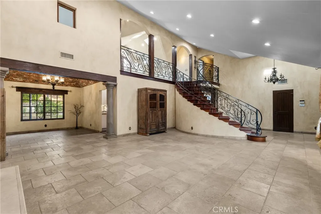 Stunning Spanish Revival estate located in the highly desirable Lower Porter Ranch neighborhood, originally part of the Tennis Court Estate Homes. This exceptional custom residence offers timeless Old World Santa Barbarainspired design and true pride of ownership. Situated on a large, private lot surrounded by mature pine, palm, ficus, and fruitless pear trees, the property features a resort-style yard with a freeform beach entry pool, bridges, decks, waterfall, and spa. Perfect for entertaining or relaxing in total privacy. Inside, the home showcases exquisite craftsmanship throughout. The dramatic entry and living room feature limestone floors, a soaring ceiling, and a stunning custom fireplace with an elegant mantle. Oversized arched French doors open to multiple balconies and patios, blending indoor and outdoor living. The formal dining room offers a hand-crafted brick ceiling, while the open kitchen boasts beautiful walnut-stained flooring and quality finishes. The wrought iron and cherrywood staircase leads to a dramatic loft and three spacious upstairs bedrooms, including the primary suite with a large custom balcony and newly remodeled bath. The fourth bedroom (or office) is located downstairs with its own bath, ideal for guests or a remote work space. Imported architectural detailsdoors, windows, and balconieswere hand-selected and transported from San Miguel de Allende, Mexico, creating a truly one-of-a-kind residence! Additional highlights include a three-car garage and excellent parking! Located near excellent restaurants, entertainment and so much more!