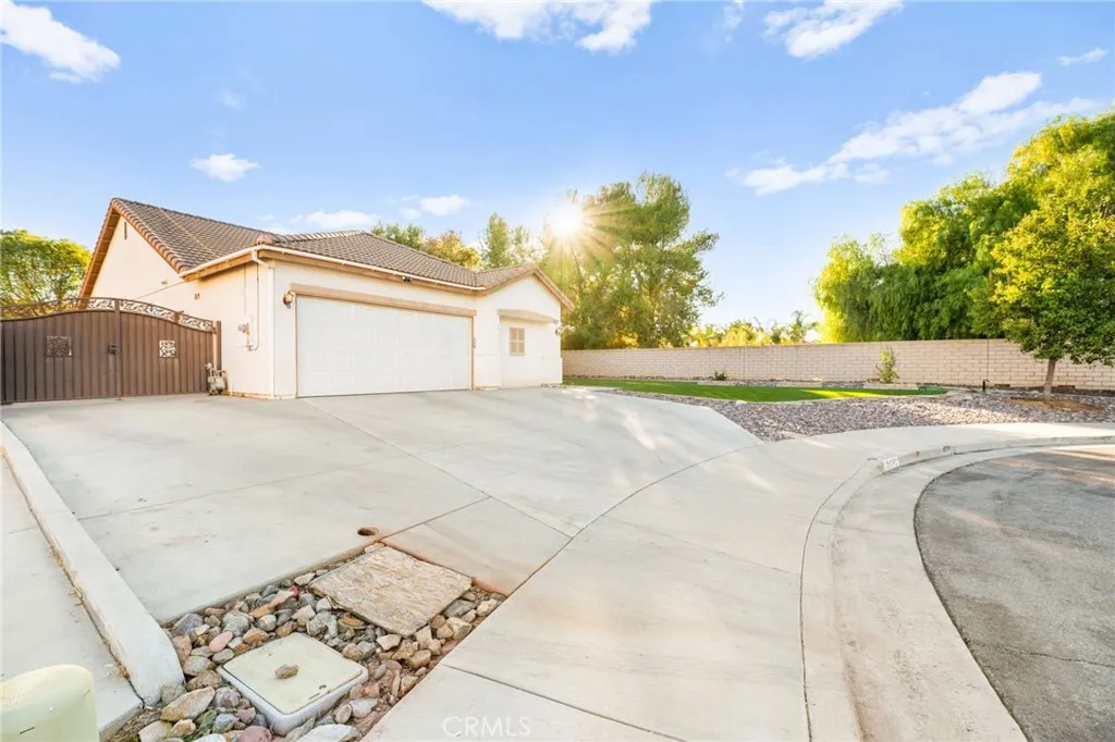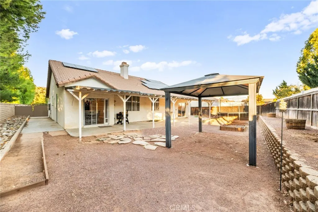 PAID OFF SOLAR! Nestled in a tranquil Menifee neighborhood, 26141 Unitas Court welcomes you with a perfect blend of comfort, efficiency, and charm. From the moment you arrive, youll notice the curb appeal, featuring lush artificial turf in the front yard that stays green year round without mowing or high water bills. Inside, an open and airy layout filled with natural light creates a warm atmosphere for daily living and entertaining. With 4 bedrooms and 2 bathrooms, this single-story design is ideal for families of all ages or anyone seeking the ease of one-level living. Designed for comfort and savings, this home includes fully paid off solar panels so you can enjoy green energy and dramatically lower utility bills from day one. The low property tax rate means annual savings compared to similar homes in higher-tax areas, making this a smart long-term investment as well as a cozy place to call home. A 3-car tandem garage provides plenty of room for vehicles, tools, and storage. The tandem section offers a unique opportunity for future expansion. Need a home office, playroom, or in-law suite? The third bay can be converted into extra living space and was even used as a fifth bedroom in the past. This versatile layout adds exceptional value for growing households or those needing flexible use. Tucked at the end of a quiet cul-de-sac, the location offers minimal traffic and a safe, neighborly environment where kids can play and evenings are peaceful. Youll love the sense of community and the convenience of nearby parks, schools, shopping, and dining. Its a true blend of suburb