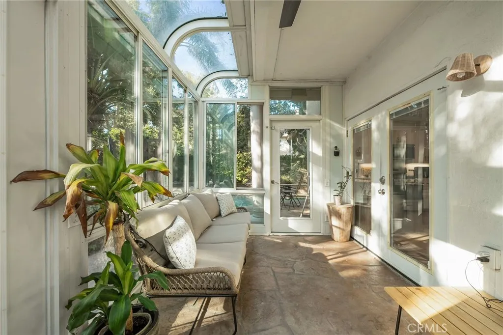 Discover this stunning and impeccably maintained home located in the highly sought-after Hunters Ridge community of Fontana, Etiwanda school district. This beautiful residence offers 4 spacious bedrooms and 3 full bathrooms, including a convenient main-floor bedroom and bath, perfect for guests or multi-generational living. A bright and inviting sunroom is ideal as a private retreat, reading lounge, or hobby space. The open-concept kitchen flows seamlessly into the family room, creating an ideal setting for both everyday comfort and memorable gatherings. Youll enjoy abundant cabinet and counter space, an upgraded walk-in pantry, and modern appliances. The family room is anchored by a cozy fireplace, adding warmth and charm. Situated on a large, well-kept corner lot, the outdoor space is a true oasis. Step into your own tropical escape featuring a heated in-ground pool and spa, surrounded by lush vibes and multiple patio areas perfect for lounging, sunbathing, and entertaining. A built-in grill and outdoor island create an ideal environment for weekend barbecues and celebrations with family and friends. Block walls offer privacy and low-maintenance durability, allowing you to enjoy the space with ease. Inside, youll find fresh two-tone interior paint, brand-new laminate flooring, and upgraded appliances, enhancing both style and comfort. No HOA fees add to the appeal and freedom of living in this fantastic neighborhood. Additionally: The furniture may be purchased at the right price for those who love the current design aesthetic.