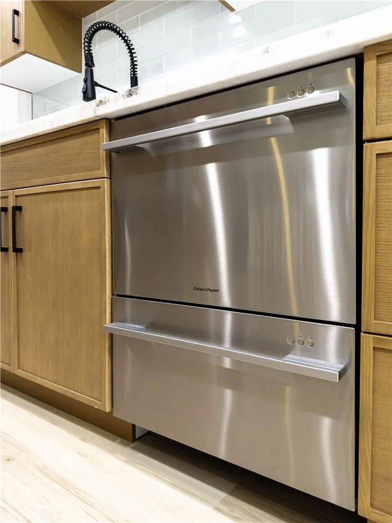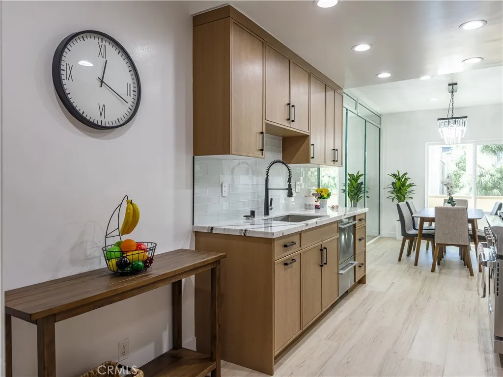 Beautifully remodeled 2-bedroom, 2.5-bath condo in prime Westwood location with all work completed under permits to ensure quality and compliance. Features include 8mm waterproof SPC vinyl flooring with 12mm underlayment, new double-pane windows and sliding door, recessed lighting with dimmers, and a marble-faced fireplace. The bathrooms showcase marble floors and backsplash, custom vanities with granite countertops, Kohler faucets, 12" rainfall showers, LED mirrors with defrost, and Kohler toilets. The modern kitchen boasts frameless cabinets, granite countertops, glass tile backsplash, and high-end appliances including a 36" American Range 6-burner (ARROB366-N), 42" ZLine range hood (619-42), GE Profile built-in microwave (PWB7030SLSS), Fisher & Paykel double-drawer dishwasher (DD24DDFTX7), Fisher & Paykel counter-depth French door refrigerator (RF170ADX4N), and Kohler faucet. Additional highlights include central air/heat, in-unit laundry room, balcony off the living room, optional no-stairs access from garage to the unit via elevator in the lobby, gated 2-spaces tandem parking, and community pool, spa, and clubhouse. Located in the desirable Westwood Charter school district, just minutes from UCLA, Century City, and Beverly Hills.