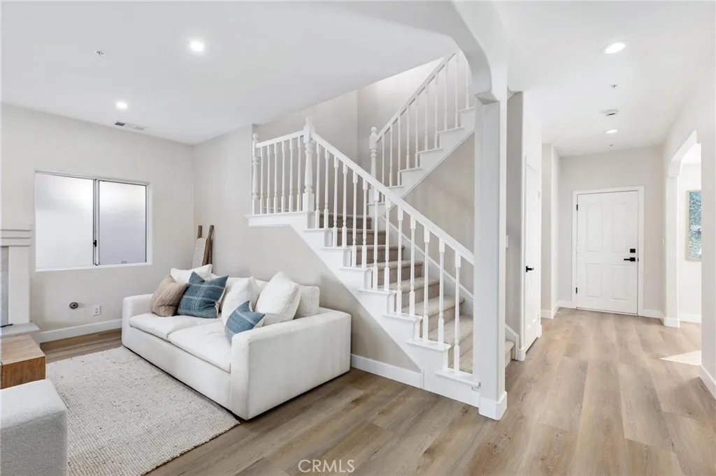 Recently renovated throughout, 1714 Marshallfield Lane #A has been meticulously curated to enhance everyday living. Upon entry, the front foyer welcomes you with double-height ceilings and a skylight that fills the space with natural light. To the right, the formal living room features an oversized window that brightens the room and flows seamlessly toward the kitchen. To the left of the foyer, the spacious family room offers a cozy fireplace and double glass doors leading to a large front terrace perfect for entertaining or relaxing. Toward the rear, the kitchen and dining areas pair effortlessly to create an inviting and functional space. The updated kitchen includes breakfast bar seating, a built-in wall oven, gas cooktop, and abundant natural light. Also on this level, find a powder room, laundry room, and a large storage closet, along with direct access to the two-car garage featuring built-in overhead storage. The front yard is fully fenced and turfed, offering a low-maintenance outdoor retreat. Ascending upstairs, the primary suite is thoughtfully positioned for privacy and impresses with its exceptional scale. The oversized suite showcases vaulted ceilings, a fireplace, and a charming window bench. The primary ensuite is equally generous, featuring dual vanities, ample storage, a large glass shower, and a spacious walk-in closet with custom built-ins. Also on the upper level are three additional bedrooms, one junior ensuite and two secondary bedrooms, all of which are generously sized. The junior suite offers vaulted ceilings, a fireplace, a private balcony overlook