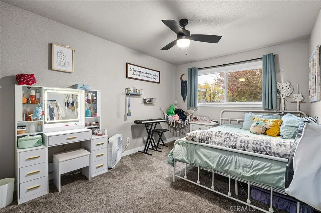 Nestled on a cul-de-sac just blocks from Lower Bidwell Park, this beautifully updated 4-bedroom, 3-bath home with an office offers the perfect blend of comfort, functionality, and charm. Over the past few years, nearly every surface has been refreshed from new drywall, texture, and paint throughout to all-new lighting, fixtures, and appliances. Step inside to an inviting, well-designed floor plan with the bedrooms privately situated on one side and the main living spaces on the other. The spacious living room features warm laminate flooring, a classic brick fireplace, and abundant natural light with easy access to the backyard. The kitchen offers generous counter space, new appliances, and a large granite single-basin sink. The bathrooms have been stylishly updated with new tile and double sinks in both the hall and main bathroom, while three of the four bedrooms feature new plush carpet. Behind the scenes, the home has received major system upgrades including a new HVAC system, tankless water heater, added insulation, and solar panels with a new inverter for energy efficiency. The backyard is an outdoor retreat complete with a large covered patio, mature fruit trees, a spacious lawn, and an in-ground pool with a slide for summer fun. A detached secondary garage with a roll-up door makes an ideal workshop, complemented by an additional storage shed. Located just minutes from Chicos parks, trails, schools freeway access, and downtown, this move-in ready home truly checks all the boxes!