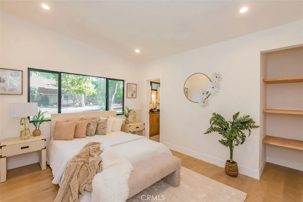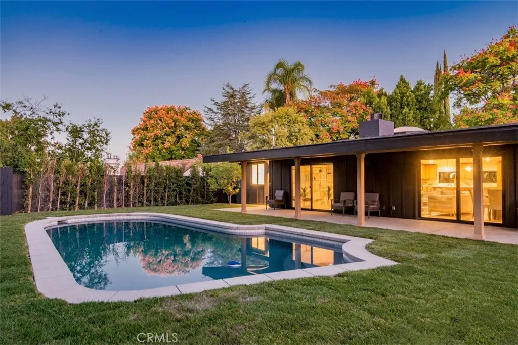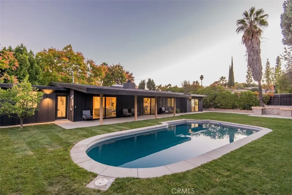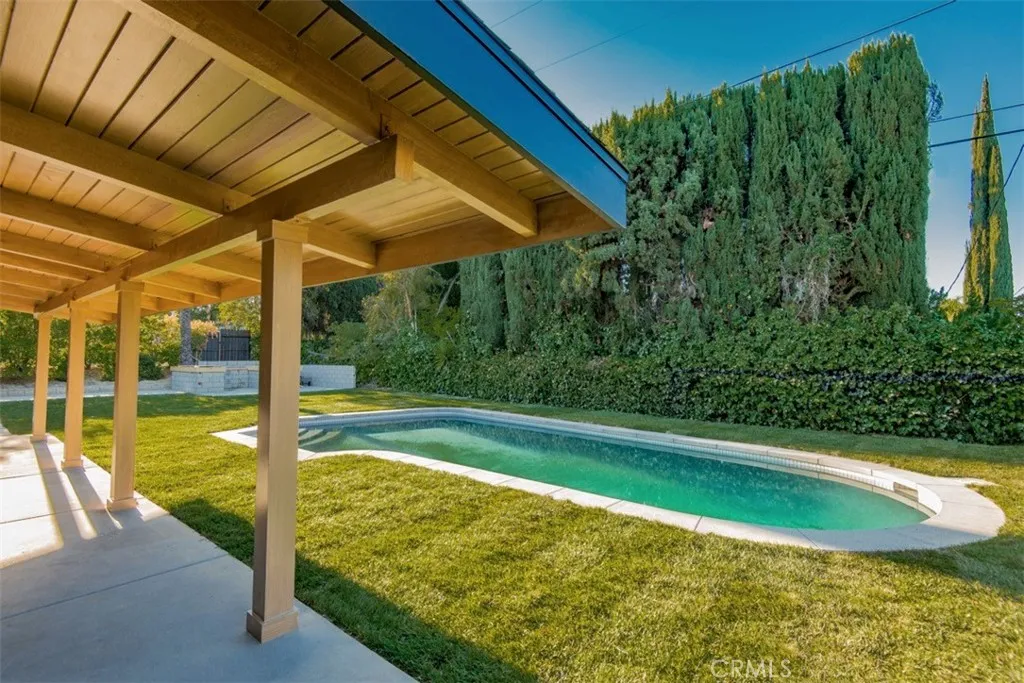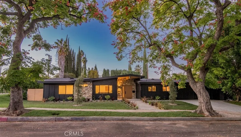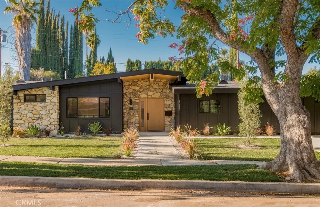 Step into timeless style and modern luxury with this beautifully renovated mid-century home nestled in the heart of one of Woodland Hills most desirable neighborhoods. This stunning 4-bedroom, 3-bathroom residence perfectly blends classic architectural charm with contemporary finishes and thoughtful design. An open-concept floor plan showcases expansive living spaces with real white oak shiplap ceilings, clean lines, and abundant natural light pouring through the home. The chefs kitchen features sleek custom oak cabinetry, Macchia stone countertops, premium stainless-steel appliances, designer light fixtures and a generous island perfect for entertaining. The primary suite offers a serene retreat with a spa-like ensuite bathroom and access to the private backyard oasis. Twin walk in his & hers closets, a seamless walk in shower, stand-alone tub, Italian porcelain tile, white oak tower cabinetry and Delta fixtures. Each additional bedroom is spacious and bright, while all three bathrooms have been tastefully updated with designer fixtures and finishes. Enjoy seamless indoor-outdoor living with sliding glass doors that open to your private landscaped backyard featuring a newly built BBQ area with refrigerator, grill and seating, a sparkling backyard pool which sits at the heart of the outdoor space, ideal for gatherings or relaxing under the California sun. Every inch of this home has been reimaginedfrom new oak flooring and lighting to updated plumbing, electrical, roof, sewer, AC, furnace, tankless water heater, windows, doors, kitchen, bedroom, bathrooms and energy-efficie