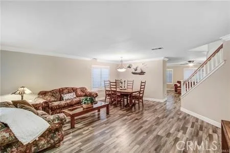 Absolutely Turn Key Home! NEW PAINT AND NEW FLOOR. This open floor plan has 4 bedrooms with a large loft, open kitchen with plenty of cabinet and counter space. This property has several upgrades and energy saving features like, solar, cool coat upgraded paint job with Warranty, water softening system, 2 ac units, whole house fan and an attic fan. Recent updates include fully updated downstairs guest bathroom, newly remodeled and reinforced deck, shutters throughout, crown molding, newer thick wood laminate flooring, large walk in pantry with 1st level laundry room. Outside you'll find a very roomy level backyard which includes an insulated patio with fan and canned lighting, gas fire pit, mature trees throughout all lined with new decorative vinyl fencing, This is a must see!!