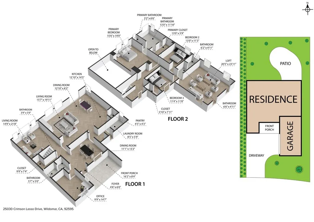 Designed for modern living and timeless appeal, this FORMER MODEL HOME blends sophistication, functionality, and serene surroundings in one of Wildomars most desirable neighborhoods. Overlooking the TRANQUIL RESERVOIR, this 4-BEDROOM, 3.5-BATH residence showcases VAULTED CEILINGS, abundant NATURAL LIGHT, and an OPEN-CONCEPT layout that creates an immediate sense of scale and flow. The MAIN LEVEL features a FULL BEDROOM and BATHROOM, ideal for guests or multi-generational living, along with a FORMAL DINING ROOM and a SPACIOUS FAMILY ROOM that connects seamlessly to the CHEF'S KITCHEN. Outfitted with GRANITE COUNTERTOPS, a CENTER ISLAND, STAINLESS STEEL APPLIANCES, tile flooring, and a WALK-IN PANTRY, the kitchen serves as the heart of the home and the perfect setting for everyday living and entertaining. Upstairs, NEW LAMINATE FLOORING extends throughout, complementing the luxurious PRIMARY SUITE that offers DUAL VANITIES, a SOAKING TUB, a separate WALK-IN SHOWER, and a generous WALK-IN CLOSET. Two secondary bedrooms, a full bath, and an EXPANSIVE BONUS ROOM WITH BALCONY ACCESS provide flexible living options, while a BUILT-IN WORKSTATION creates an ideal workspace or study area. Outside, the EXPANSIVE BACKYARD offers endless potential for outdoor entertaining and relaxation, with ample space to design your dream patio, garden, or pool to take full advantage of the homes peaceful HILLSIDE. Located in a quiet, well-maintained community known for its pride of ownership, this residence delivers the perfect balance of space, comfort, and timeless appeal, all within reach of loca