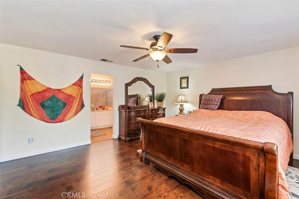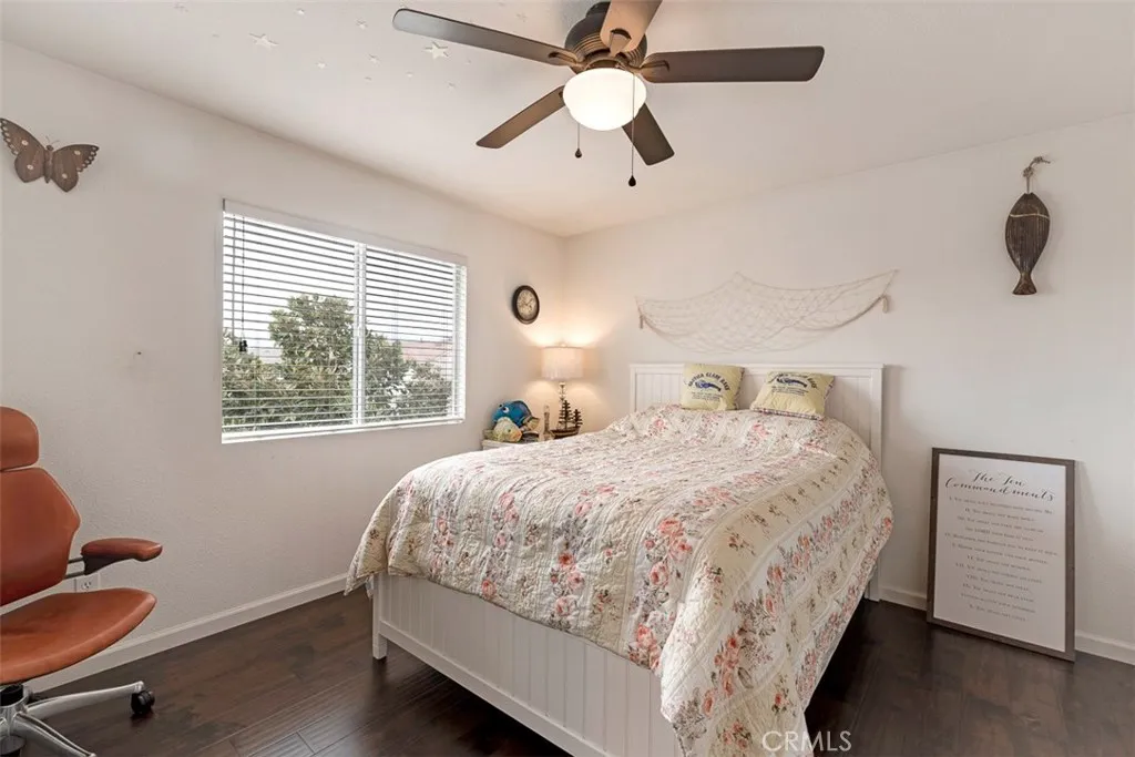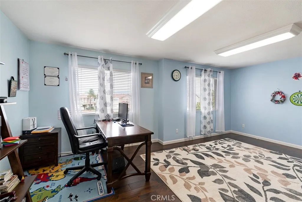 Beautiful four-bedroom home with a main-floor bedroom and full bath. Separate living and dining rooms and laminate wood flooring throughout. Upstairs includes a spacious office ideal for working or studying from home. Most rooms feature ceiling fans for year-round comfort. The large backyard is perfect for relaxing or entertaining, with a gazebo equipped with power, lighting, and a fan. Three-car garage plus an oversized driveway offers ample parking, including potential RV space, and includes a 220V EV charger. Prime location within walking distance to parks, shops, Chino Hills High School, and other top schools. Easy freeway access to both Orange County and Los Angeles.