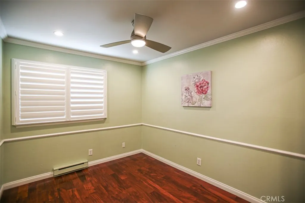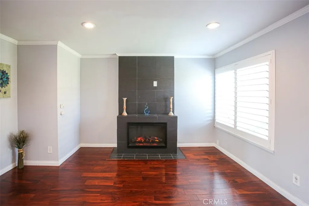 Turnkey Corner unit! Bradford place community Townhome, 3 bedrooms, 1.5 bathrooms, detached 2 car garage. Inside featuring laminate wood floors, plantation shutters, recessed lighting, built in electric fireplace, upgraded dual pane windows. First floor features a half bath, dining area, and remodeled kitchen. Sliding door access to spacious back patio area. All 3 bedrooms upstairs, remodeled bathroom, laminated wood floors. The Bradford Place community offers resort-style amenities, including a sparkling association pool, inviting clubhouse, and a fun-filled kids' playground. Best of all, enjoy the peace of mind and educational excellence of the award-winning Garden Grove Unified School District.