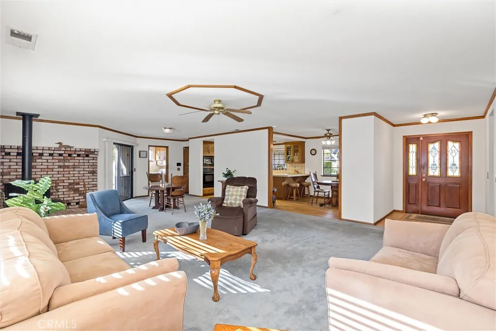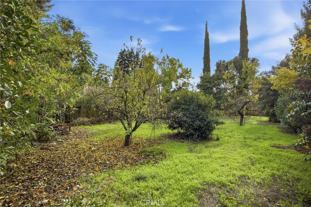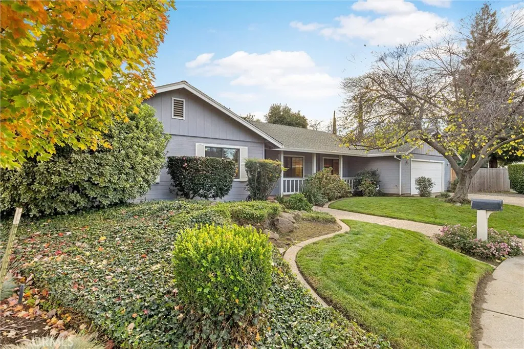 JUST FELL OUT OF ESCROW. Now this home is being offered with a new roof, clear septic, and pest clearance! On the west side of town, discover the rural lifestyle you've been dreaming of at Big Chico Creek Estates. Enjoy wide, curving streets with sidewalks, rich soil, and large lots. This charming ranch-style home features a welcoming front porch. Inside, the family kitchen features an eating area, ample cabinets and counter space, and a window above the sink that overlooks the front yard. The extra-large family room can easily accommodate a dining area and features a cozy gas wood stove. The three bedrooms include a spacious primary suite with a walk-in closet and an en-suite bath featuring a dual-sink vanity and a step-in shower. For added convenience, you'll find an individual laundry room with extra cabinetry for storage. The backyard is a true gem, offering a covered patio perfect for morning coffee. This expansive lot is a gardener's delight, graced with mature fruit trees such as peach and fig, offering a taste of homegrown sweetness.