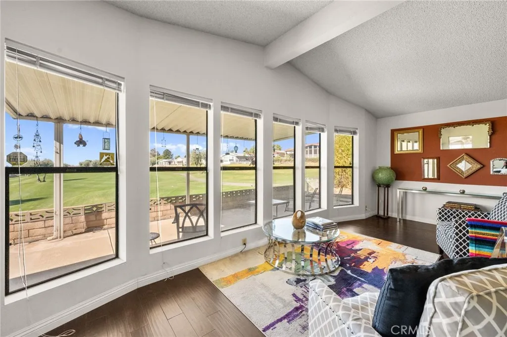 Welcome home to this charming residence located in the highly desired 55+ Highland Springs Village community. Offering 1,990 sq ft of comfortable living space on a 4,356 sq ft lot, this 2 bedroom, 2 bathroom home features a warm and inviting layout youll love coming back to. Enter through the spacious sun room, a bright and relaxing space perfect for morning coffee, tending to plants, or enjoying a quiet afternoon read. This opens into a welcoming living and dining area highlighted by a cozy fireplace and large windows that allow natural light to flow throughout the home. The primary bedroom offers a peaceful retreat with plenty of space and natural light. The primary bathroom is beautifully appointed with dual sinks, a walk-in shower, soaking tub, and ample cabinet storage. The secondary bedroom is generously sized, perfect for guests or use as an office/workspace. Step outside to enjoy your private backyard that overlooks the golf course, complete with your own gate access to the greens and a dedicated golf cart garage with direct access onto the courseideal for golf enthusiasts or those who love easy outdoor living. Whether you enjoy scenic evening walks or a morning round, this setting brings tranquility right to your doorstep. Highland Springs Village offers resort-style amenities including a clubhouse, pool, spa, tennis courts, and a 9-hole golf course exclusively for residents. Conveniently located less than 2 miles from grocery stores, restaurants, and parks, youll have everything you need close by. This home blends comfort, convenience, and a peaceful lifestyle. Do