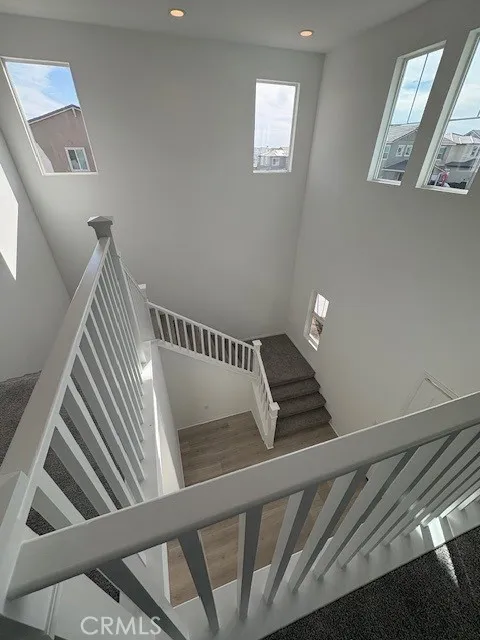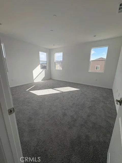 Welcome to the Presley floorplan here in Legacy at the Braverde masterplan in Menifee. It's the final phase and only a few homes remain! As you enter, a 2 story ceiling entry welcomes you. The main floor offers an expansive great room, a beautiful sunroom that lets the light in, a gourmet kitchen w/ white cabinets, quartz counters w/full tile backsplash, under cabinet lighting, walk-in pantry and an immense center islandperfect for entertaining and a cook's dream come true! The whole house has tall 8-foot doors, tons of recessed lighting and ceiling fan prewires in great room, loft and all bedrooms. Flooring includes wood laminate on the main level, 12 x 24 tile flooring in bathrooms & laundry room and upgraded carpet in hallways, stairs and all bedrooms. A convenient first floor bedroom and full bathroom w/walk in shower and a spacious 2-car + storage garage completes the first level of the home. This home also features an open stair railing leading up to the second level where you'll find a large loft and three inviting bedrooms, each with their own walk in closets and a luxurious owner's suite complete with a separate shower and soaking tub. This home includes owned Solar and is turnkey! Visit today!