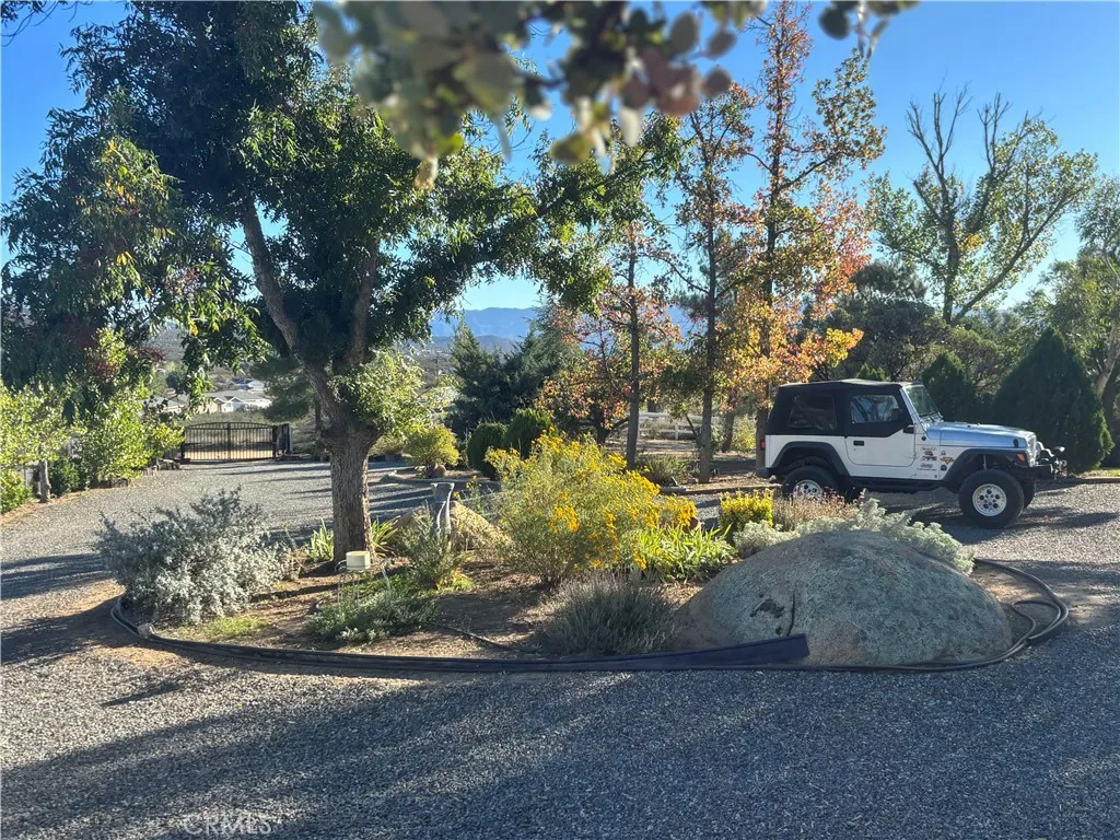 Escape to serenity in this distinctive tri-level retreat, perfectly situated within the gated community of Lake Riverside Estates. Set on 2.69 acres of scenic landscape, this 2,420 sq. ft. home blends architectural warmth, artful details, and the peaceful rhythm of country living just minutes from Temecula Wine Country. Step inside to discover vaulted ceilings with exposed beams, a welcoming Fisher wood-burning stove set in a brick hearth, and open living and dining areas framed by large windows that capture breathtaking mountain and sunset views. The upper level offers a private primary suite with a dual-sink bath and a secondary bedroom. The lower level features a secondary suite with its own bath and a bright, spacious laundry room with cabinetry and utility sinkideal for guests, family, or multi-generational living. A detached library connected to a glass-lined solarium extends the homes living spaceperfect as an art studio, office, or reading retreatwith direct deck access to enjoy peaceful views. Outdoors, enjoy the courtyard with pergola, solar panels, mature landscaping, beautiful olive trees, and a charming ornamental Manzanito treeknown in Peruvian culture for its smooth bark and sculptural form. The property also features a private gated entrance, storage shed, RV access, and ample room to expandwhether for a workshop, guest unit, or additional garage. Among the homes many special touches is a custom bench originally designed by the Disneyland design team, blending artistry and history with the homes inviting character. Residents of Lake Riverside Estates enjoy a