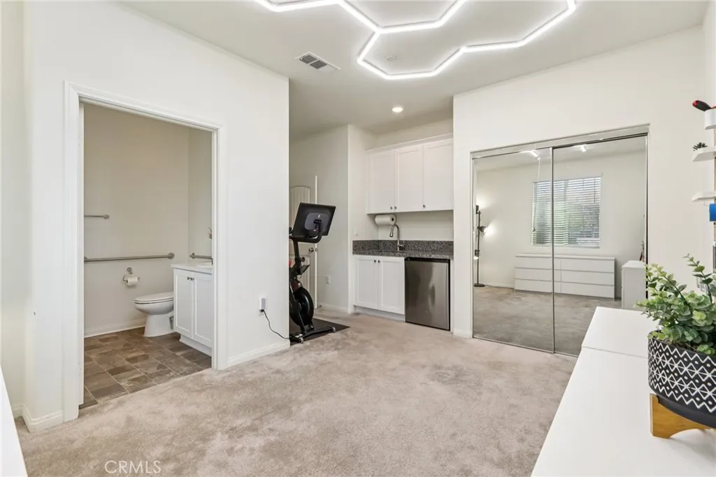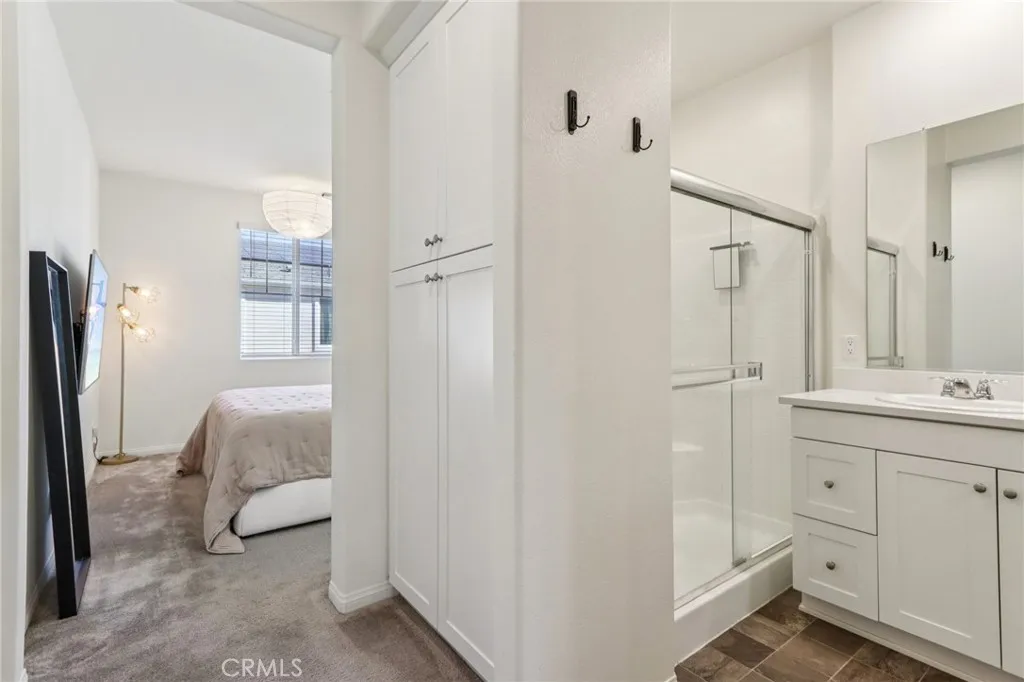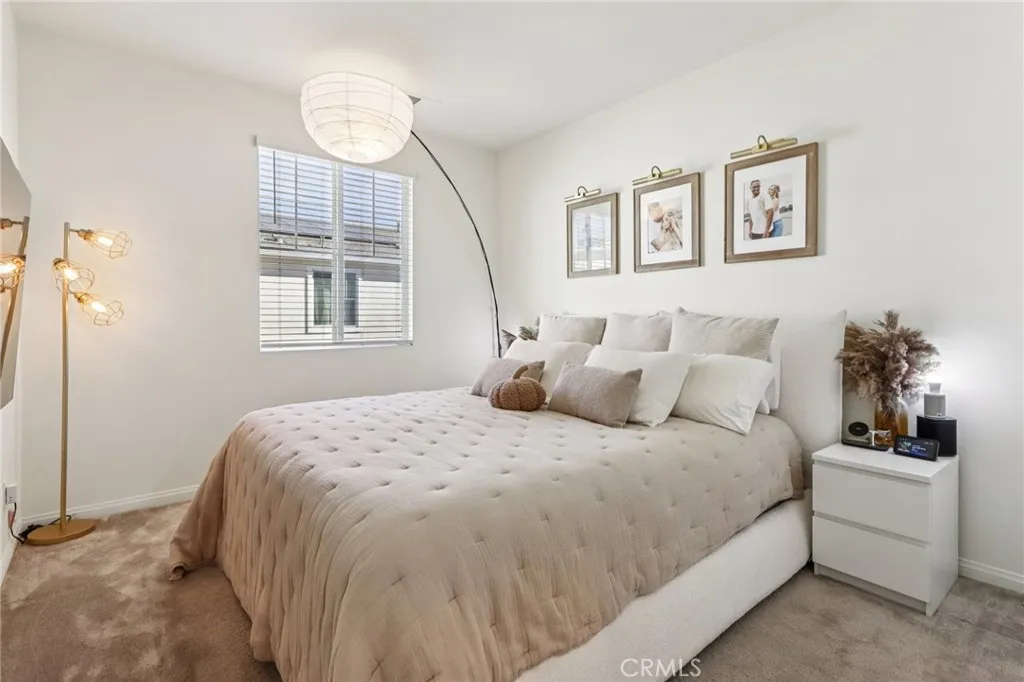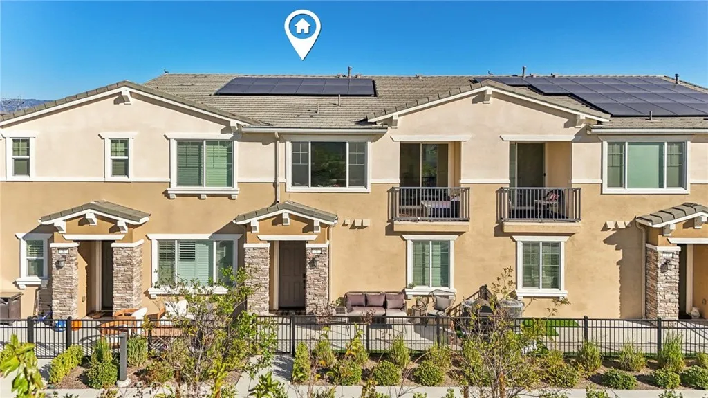 Welcome to Gabion Ranch in North Fontana. This modern condo offers an elegant two-story residence with 1,392 square feet of designed living space. The bright and open floor plan includes 2 bedrooms and 2.5 bathrooms: a next-gen suite ground-floor bedroom with a full bath, built-in granite countertop with sink, and small refrigerator, and an upstairs primary suite featuring an en-suite bathroom with quartz countertops, dual sinks, and a walk-in closet, as well as an additional half bathroom on the upper level. The convenient, spacious laundry room is also located on the ground floor. The kitchen boasts a large island, granite countertops, and upgraded white cabinetry, connecting seamlessly to the open family and dining rooms. Interior highlights include: recessed lighting, smart custom blinds, Honeywell thermostat, decorative paint, vinyl, and carpet flooring throughout. Exterior amenities feature a private balcony and patioperfect for outdoor dining and enjoying the breathtaking MOUNTAIN VIEWS. The home also includes washer and dryer, refrigerator, leased Solar and a Ring Doorbell camera. The attached two-car tandem garage provides ample storage, parking, an EV charger, and a tankless water heater. Gabion Ranch is recognized as one of Fontanas premier communities, offering residents access to clubhouses, fire pits, BBQ and picnic areas, swimming pools/spas, splash pad, sports courts, parks, playgrounds, and a dog park. Conveniently close to shopping, dining, and entertainment, and offers easy access to the 15 and 210 freeways. Make this exquisite home yours!