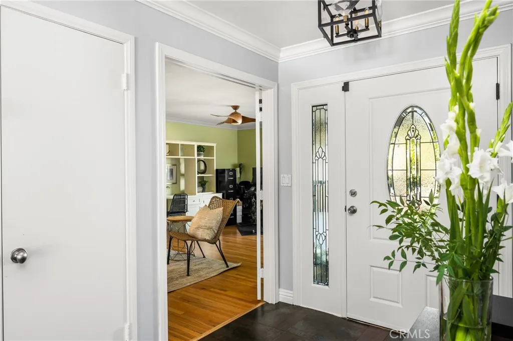 Nestled just a short distance from Old Towne Orange, this beautifully renovated four-bedroom, two-bath home, blends modern finishes with timeless charm. An inviting open-concept layout welcomes you inside, highlighted by a spacious great room with a cozy fireplace- perfect for gatherings or relaxing evenings at home. The showpiece kitchen is designed for both function and style, anchored by a large 5 ft. x 8.5 ft. island featuring a warm butcher block countertop complemented by sleek white kitchen cabinetry, quartz countertops, glass-tile backsplash, and top of the line appliances including a bakery-style double oven. Enjoy the added comfort of a separate living room with hardwood floors, French doors, and a secondary fireplace OR use this versatile space as a home office, gym, or playroom. The spacious bedrooms feature gleaming hard wood floors, fresh paint, and ample closet space. Some of the newer upgrades include a tankless water heater, water softener, living room sliding doors, additional 100 AMP electric panel, all light fixtures upgraded, updated plumbing throughout, air conditioning, indoor laundry closet, and more. Out back, a lovely and low-maintenance backyard awaits with newer vinyl fencing, durable artificial turf, and a pergola for outdoor gatherings. With its corner-lot setting, modern finishes, and thoughtful improvements, this home is a rare find combining warmth, style, and everyday convenience. Nearby is Chapman University, the historic Plaza which features annual holiday events, shopping, and a wide variety of restaurants. Fall in love and make this you