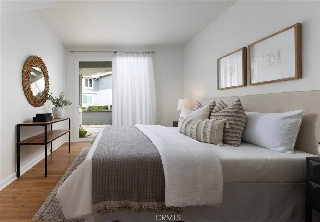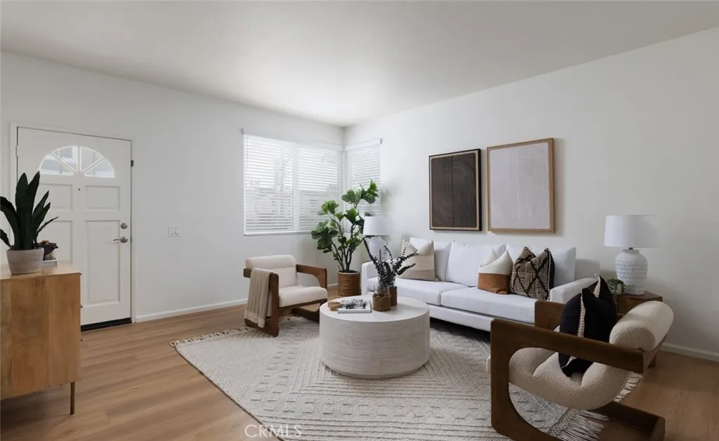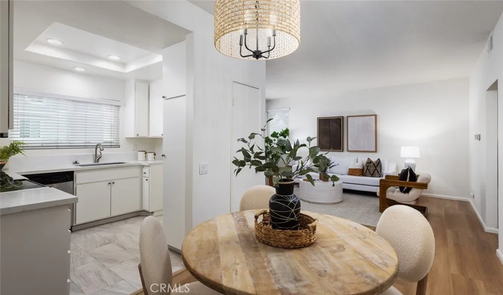 Beautifully updated single-story residence located in the desirable Northwood Horizon community of Irvine. This two-bedroom, two-bath floor plan features a spacious front patio entry and a well-designed split-bedroom layout. The home has been thoughtfully upgraded with newer laminate flooring, updated vinyl windows, fresh interior paint, modern light fixtures, refreshed bathrooms, and an updated kitchen complete with crisp white cabinetry, an oversized stainless-steel sink, and stunning stone countertops, making this home truly move-in ready. The generous great room with a separate dining area creates an ideal space for both relaxing and entertaining. Situated in an interior end-unit location, the home offers direct access to the outdoor patio from the primary bedroom. Additional conveniences include a dedicated parking space in the shared detached garage. Just steps from beautiful Orchard Park and close to award-winning schools, including Northwood High School. With easy access to the 5 freeway, toll roads, shopping, dining, and entertainment, along with the benefit of low HOA dues and no Mello Roos, this is a fantastic opportunity to own in one of Irvines most sought-after neighborhoods.