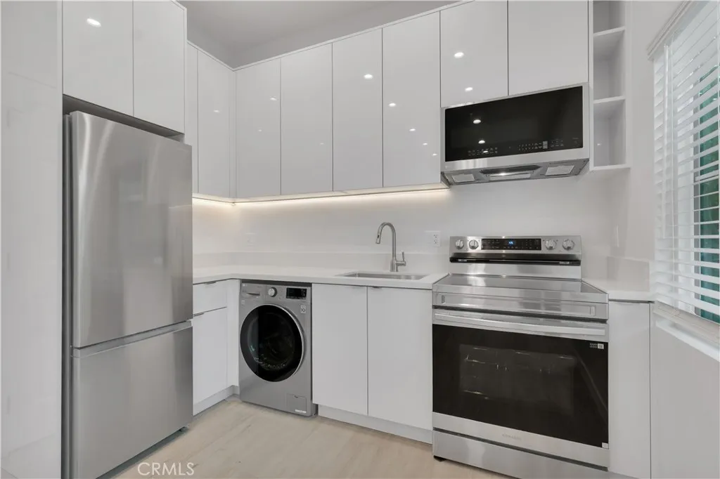 This brand-new ADU blends modern comfort with upscale design in every detail. Discover this newly built 1-bedroom, 1-bathroom ADU offering modern luxury in a compact, highly efficient design. Thoughtfully crafted with premium finishes throughout, this home features an open concept living area filled with natural light, high ceilings, and sleek contemporary details. The gourmet kitchen is equipped with top-of-the-line appliances, including a stainless-steel refrigerator, range, dishwasher, and microwave. The washer/dryerall chosen for performance, style, and energy efficiency. The spacious bedroom provides a serene retreat with a walk-in closet, while the elegant bathroom showcases designer tile and a luxurious walk-in shower. With energy-efficient heating and cooling, recessed LED lighting, and high-quality windows for comfort and privacy, this ADU offers both sophistication and practicality. The is a plenty of parking on the street, easy to park. The water and power meters are separate for the unit
