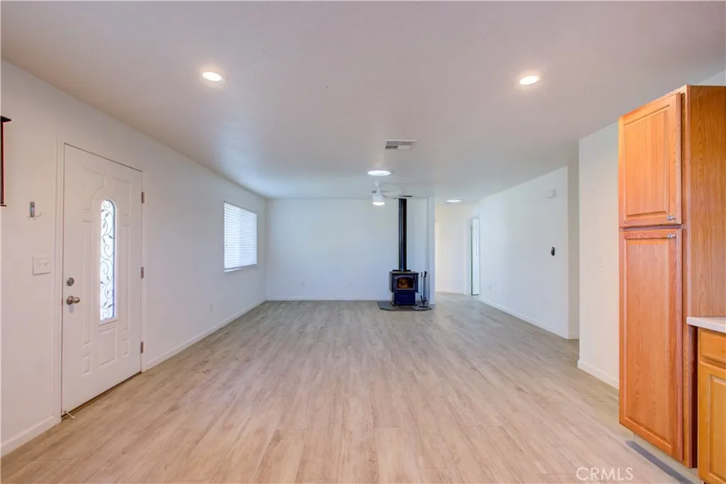Country living in this newer-built open floor plan 3-bedroom, 2-bath home featuring laminate flooring, mini blinds, ceiling fans, and seven skylights providing abundant natural light. The kitchen offers maple-colored cabinets, stainless steel sink, dishwasher, built-in microwave, gas range, and a cozy dining nook. The family room includes an electric wood stove for added warmth and charm. The primary suite features a granite countertop vanity and large walk-in tile shower. The hall bathroom includes a shower-over-tub and linen closet. Central heating and air. The finished two-car garage offers laundry hookups, a laundry sink, storage space, and electric opener. Property also includes a second dwelling (mobile home) and sits on 19.6 acres. Equipped with an agricultural well, domestic well, and septic systems for both homes. Enjoy comfortable country living with modern amenities and agricultural potential!