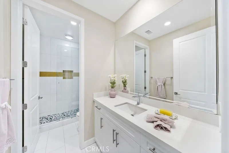 Experience luxury living in this impeccably upgraded home located in the prestigious guard-gated community of The Groves at Orchard Hills, Irvine. Every detail has been meticulously crafted to provide comfort and elegance. This functional floorplan offers 4 bedrooms, including an ensuite bedroom on the first level, an office downstairs, and a loft upstairs. The bright and airy kitchen features white cabinets, quartz countertops, stainless steel appliances, and a walk-in pantry with an organizer. The office, situated near the entry, boasts a built-in desk and bookshelf, making it ideal for a home workspace. Upstairs, youll find three generous bedrooms, including a luxurious master suite. Each bathroom has been tastefully upgraded with quartz countertops, premium tile flooring, and modernized showers. Additional highlights include large porcelain tiles, chandeliers, custom drapery, built-in organizers and closets by California Closet, Tesla chargers, recessed lighting throughout, and an electric vanity mirror. The backyard is designed for easy maintenance, featuring a functional California room and artificial turf. Enjoy the exceptional amenities of Orchard Hills, including resort-style pools, parks, and trails. This home truly offers an unparalleled living experience.