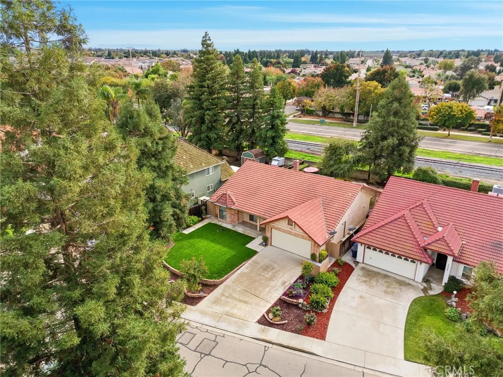 Welcome to 1845 E Evergreen Court, a beautifully maintained 3-bedroom, 2-bath home tucked at the end of a quiet Visalia cul-de-sac. Inside, you're greeted with great natural light, vaulted ceilings, and charming architectural details throughout. Just off the entry is a wonderful auxiliary space-perfect as a formal dining room, home office, playroom, or flex area to fit your lifestyle. The spacious kitchen offers an abundance of storage, extensive cabinetry, microwave & oven, a large breakfast bar, and an in-home laundry room conveniently located nearby. The living area feels warm and inviting with its stone fireplace and custom built-ins-an ideal place to unwind! The backyard is designed for easy outdoor living, featuring a large covered patio plus two additional seating areas perfect for entertaining, outdoor dining, or simply enjoying your morning coffee. Mature shade trees, privacy hedges, and thoughtful landscaping create a peaceful retreat with low-maintenance appeal. Located near Annie R. Mitchell Elementary and a nearby neighborhood park, this home sits in a highly desirable pocket of Visalia with easy access to shopping, dining, and commuter routes. A rare combination of charm, functionality, and location-this is one you won't want to miss.