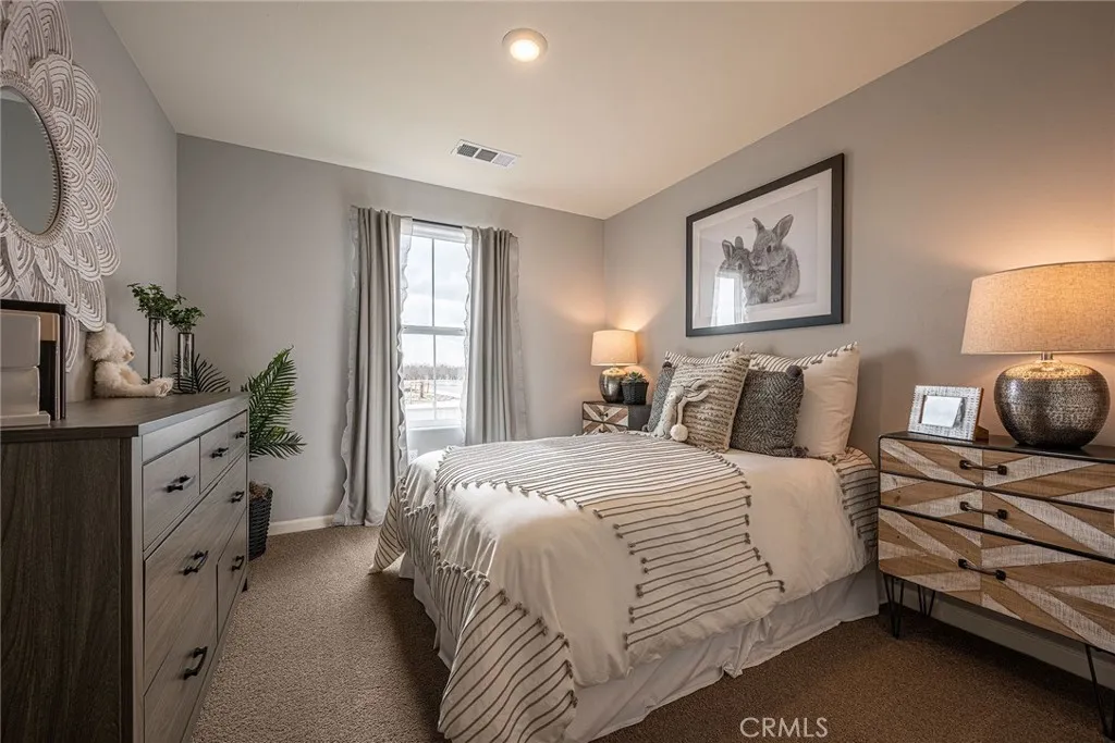 This single-story, four bedroom, two bathroom home is enhanced with 9 ceilings and offers approximately 1,509 square feet of living space with an open-style living room and adjoining kitchen and dining area that are perfect for entertaining. The kitchen features shaker-style cabinetry, quartz countertops with backsplash, a walk-in pantry, a center island with pendant lighting and snack bar, and Whirlpool stainless-steel appliances including a range, microwave and dishwasher. Black finishes are standard throughout the home. The main suite has an adjoining bathroom with dual vanity sinks and a large walk-in closet. A solar system is included in the purchase price of this home!