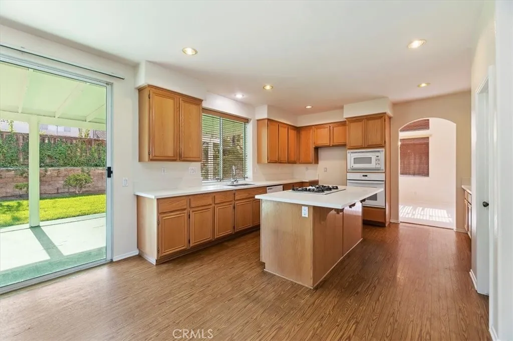 Welcome to your dream home in the heart of Orangecrest with beautiful curb appeal including palm trees and mature landscaping. This spacious residence offers 5 bedrooms, 3 bathrooms with 2950 sq. ft. of comfortable living space, perfect for families and entertaining. Step inside to find brand new carpet, wood flooring, and fresh interior paint throughout. The lovely entrance features a grand staircase, leading to large formal living and dining room highlighted by cathedral ceilings and abundant natural light. The bright open kitchen has been refreshed with new countertops and features plenty of cabinetry, a center island with built-in cooktop, microwave, dishwasher and a generous walk-in pantry. A cozy breakfast nook with extra cabinets and a built-in desk flows seamlessly into the expansive family room complete with a gas fireplace and sun-filled windows. The private downstairs office has double-door entry and a very spacious laundry room for added convenience to the first level. Upstairs you'll find four guest bedrooms and a full bath. The luxurious primary suite offers a relaxing sitting area, serene backyard views, a large ensuite bathroom with a soaking tub, separate shower, and an oversized dreamy walk-in closet. The backyard is the perfect retreat featuring a covered patio, brand-new sod, custom planter beds, and attractive landscapingideal for outdoor living and entertaining. Attached three-car garage, tile roof, and newer A/C. Located close to award-winning schools, parks, shopping, entertainment and freeways. Low taxes and NO HOA make this home even more desirable