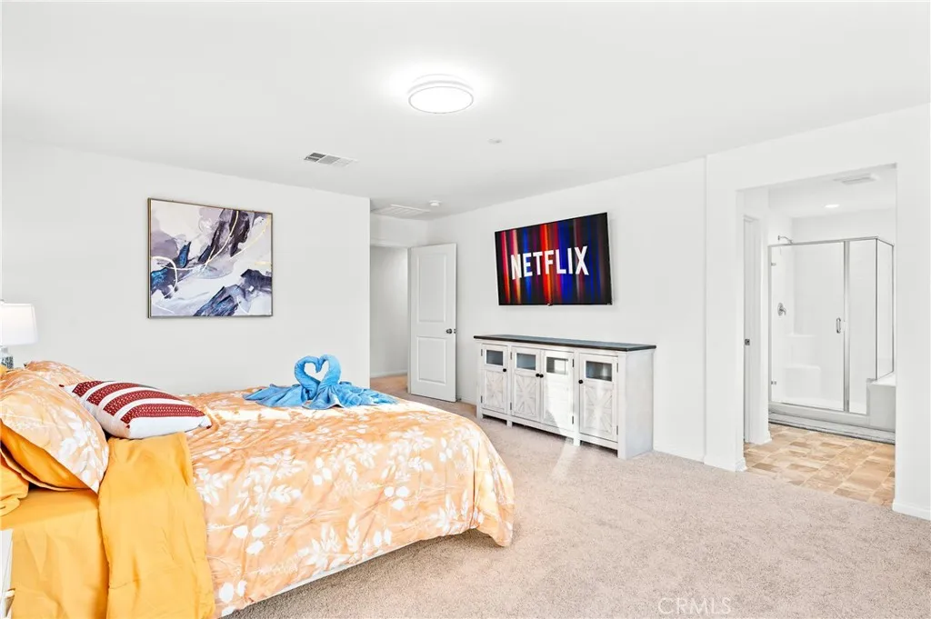 Come take a look at this gorgeous house. This stunning FULLY FURNISHED home comes with astonishing views of the mountain and SOLAR PANELS that help you save on the electric bill. This 2025 built home features 5 Bedrooms and 3 Bathrooms and is only 4 miles away from UCR. First floor has one bedroom with its own private bathroom and carpet throughout the whole bottom floor. Open floor plan includes stainless steel appliances, oversized central island, and large glass doors that lead to the beautiful newly remodeled backyard. Master bedroom includes large walk-in closet with laundry room just steps away from the other rooms. Don't miss this opportunity!