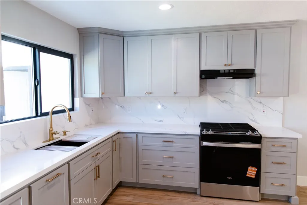 THIS ONE HAS BEEN BEAUTIFULLY DONE !! This one was just renovated from top to bottom and no expense was spared. It's a 4 br 2 ba 2 car gar. 1396 sq ft. house 7600 sq ft corner lot in a low tax area.Close to schools, shopping and fwys. Everything was done tastefully and with quality materials and it shows. You can just see the craftsmanship. Living room has a huge sliding door and custom made wall panel with a built in electric fireplace.There is new paint, windows, and the windows are Low E . Thicker glass was used for better efficiency. New solid core front doors. All interior doors have been replaced to match. Even the hinges and knobs are new. It has new electrical recepticles and all new lighting. Recessed lighting in living room, kitchen and bathrooms. plumbing is copper pipe. All new faucets in gold finish very tastefully done. New floors throughout the whole house. 6 inch base moulding. The Kitchen has custom kitchen cabinets with a lazy susan in each corner and Quartz counter tops with matching backsplash that goes all the way up to the bottom of the upper cabinets. Both bathrooms have custom floating vanities , Qurartz counter tops, custom shower stalls, and Rain showers sprinkler heads, also frameless shower doors.Property has Concrete all around. Low maintnance yard sprinklers both front and back. There is block wall fencing all around with possible RV parking on one side. There is even a covered patio in back. When you move in here, you can be sure nothing will need to be replaced or will be breaking down soon. BUYERS AND AGENTS DO YOUR DUE DILLINGENCE AND VERIF